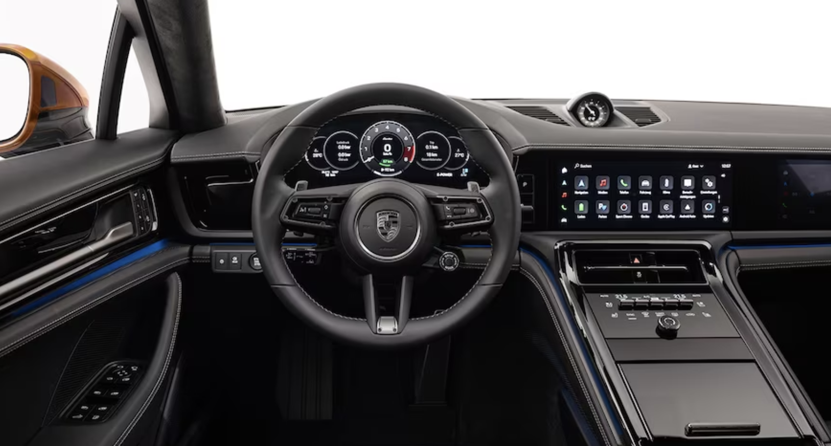 먼저 2024 파나메라의 인테리어를 살펴보면 눈에 띄는 점은 타이칸에 있는 것과 동일한 3화면 포르쉐 드라이버 익스피리언스 디지털 대시보드를 채택했다는 것입니다. 여기에는 세 가지 섹션으로 나누어진 12.6인치 게이지 클러스터 화면과 인포테인먼트 터치스크린 및 조수석 화면이 포함됩니다. 대시보드 패널을 따라 있는 헤드업 디스플레이와 주변 조명 스트립도 올해 새로 추가되었습니다.