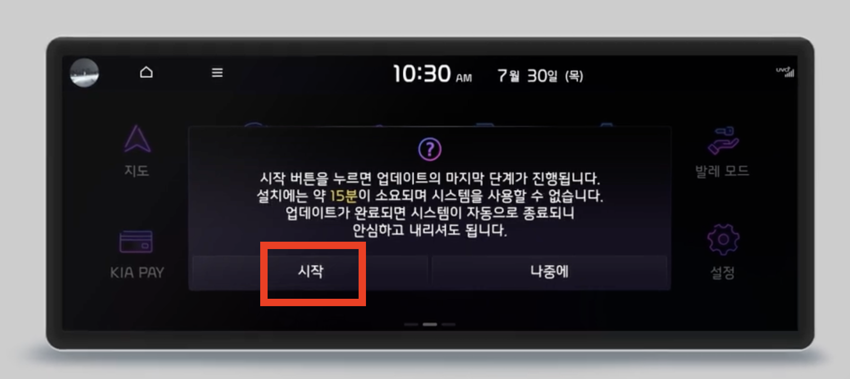 2. 업데이트 일부가 완료된 후 시동을 끄고 팝업에서 시작 버튼을 선택하면 업데이트의 마지막 단계가 진행됩니다.