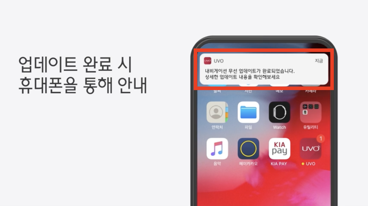 1. 운전자가 없어도 자동으로 업데이트를 진행한 후 운전자의 휴대폰으로 완료되었다고 알려줍니다.