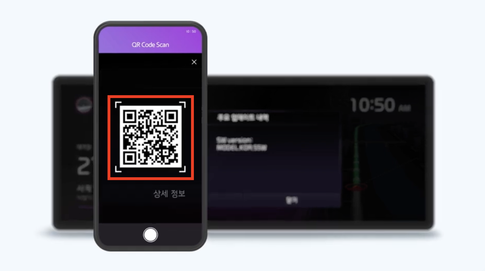 2. 업데이트 완료 후 시동을 켜면 완료 팝업에 QR코드를 스캔하여 보다 상세한 내용을 확인할 수 있습니다.