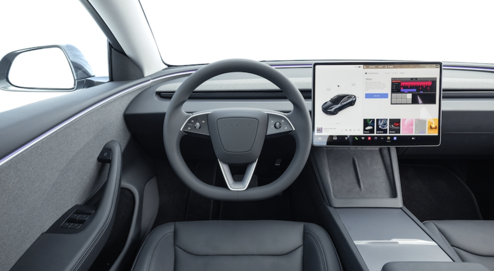 이전 모델 3와 마찬가지로 대부분의 기능은 대시보드 중앙에 장착된 수평 방향의 대형 스크린을 통해 제어됩니다. 자세히 보면 스티어링 휠이 변경된 것을 알 수 있습니다. 테슬라는 스티어링 휠의 터치 감지 버튼을 위해 방향 지시등 레버를 제거했습니다. 이러한 새로운 방향 지시등은 익숙해지는 데 시간이 좀 걸립니다.