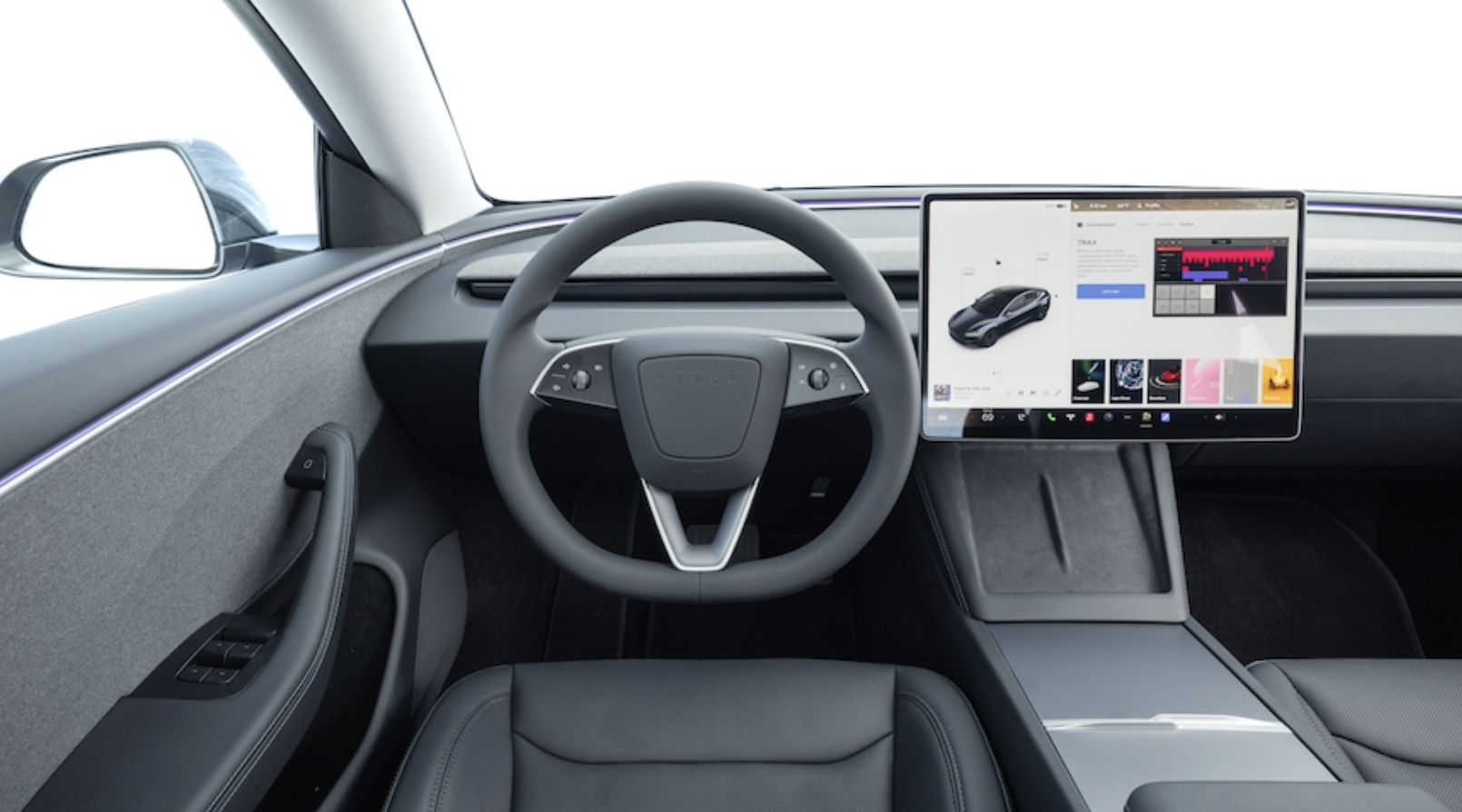 이전 모델 3와 마찬가지로 대부분의 기능은 대시보드 중앙에 장착된 수평 방향의 대형 스크린을 통해 제어됩니다. 자세히 보면 스티어링 휠이 변경된 것을 알 수 있습니다. 테슬라는 스티어링 휠의 터치 감지 버튼을 위해 방향 지시등 레버를 제거했습니다. 이러한 새로운 방향 지시등은 익숙해지는 데 시간이 좀 걸립니다.