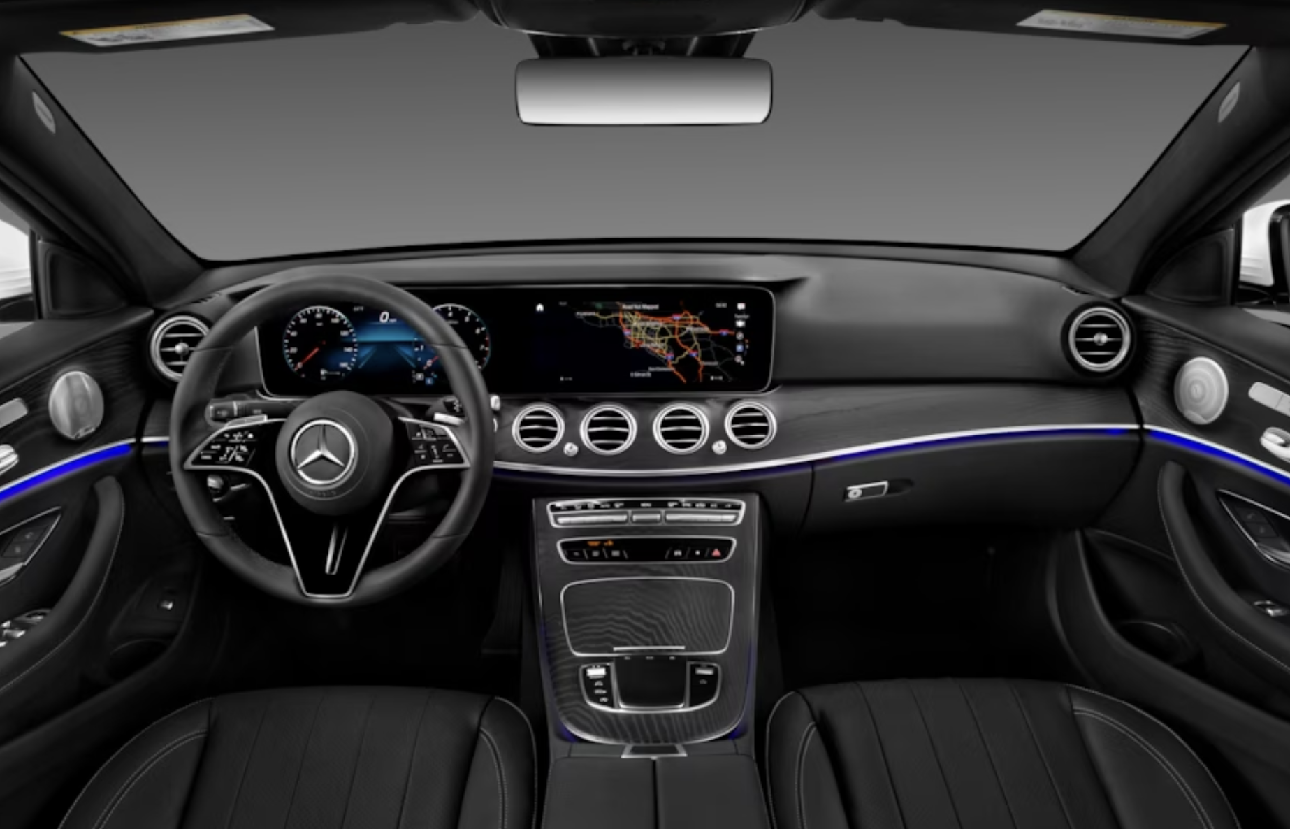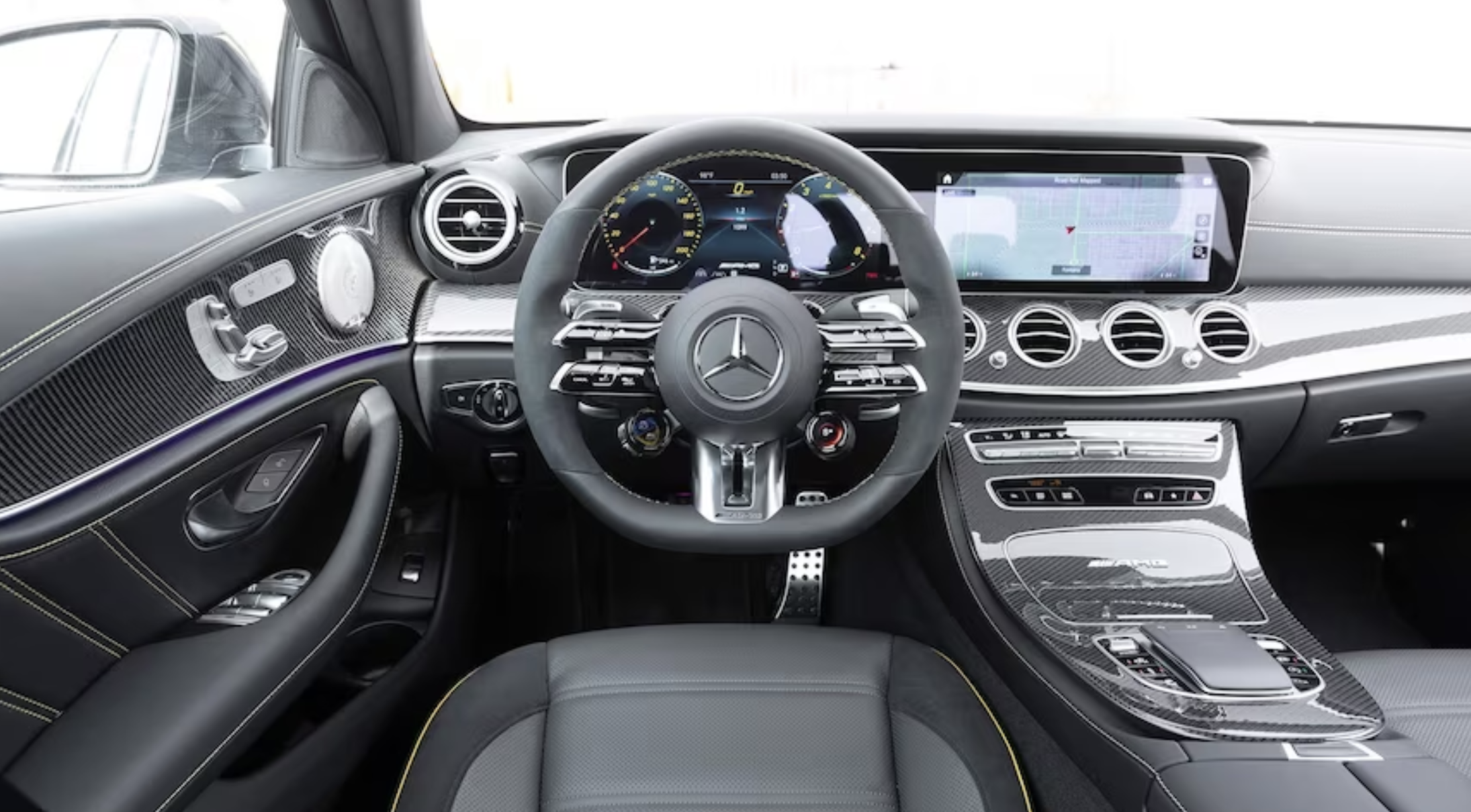 모든 E-클래스에는 12.3인치 화면 2개로 구성된 인포테인먼트가 장착되어 있습니다. 스티어링 휠 뒤에는 운전자 게이지 디스플레이가 있고 그 옆에는 기본 터치스크린이 있습니다. 터치 외에도 "Hey, Mercedes" 음성 명령을 통해 시스템을 제어할 수도 있습니다.