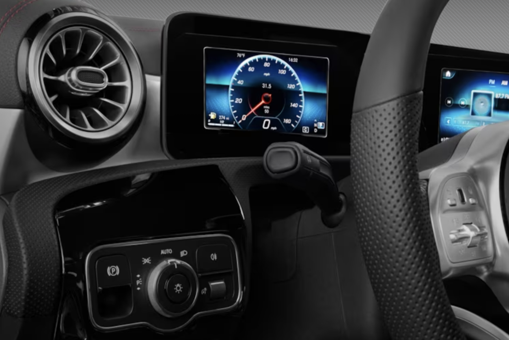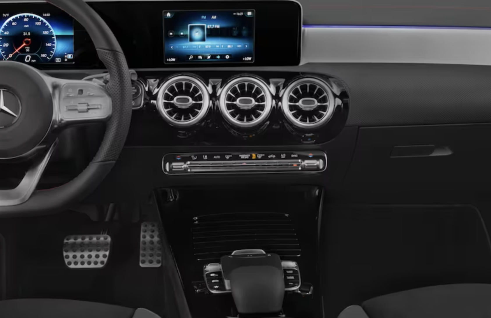 CLA-클래스는 메르세데스 벤츠의 일반적인 트윈 스크린 설정을 갖습니다. 인포테인먼트는 대시보드에 장착된 터치스크린을 통해 처리되며, 운전자는 게이지 클러스터와 동일한 디스플레이를 얻습니다.