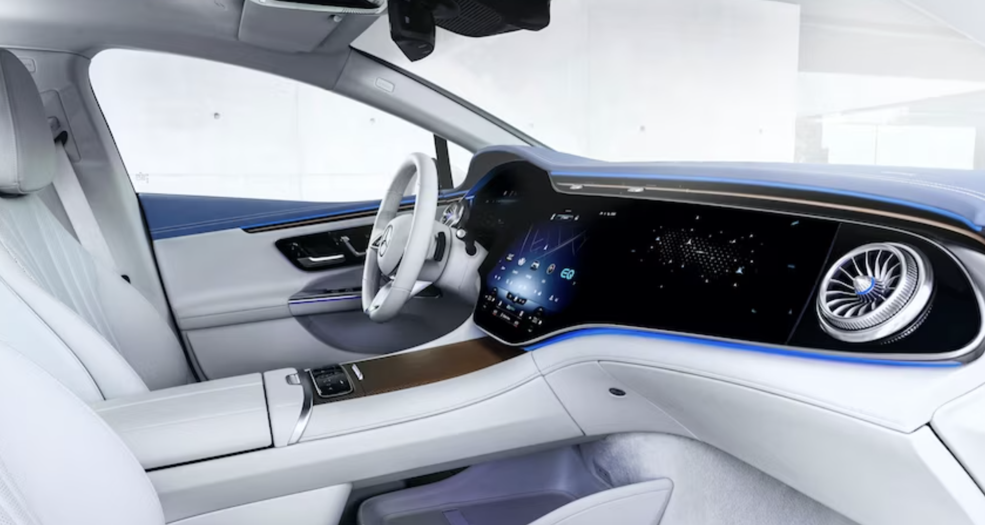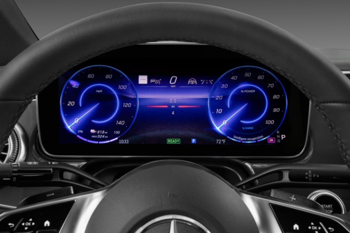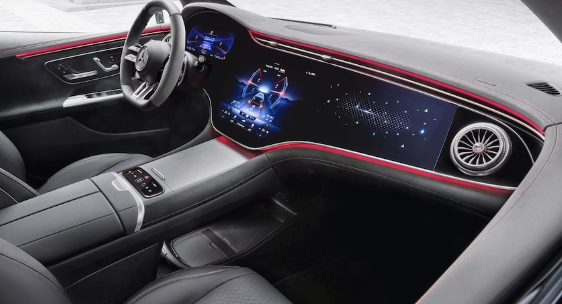EQE에 사용 가능한 장비에는 스스로 열고 닫히는 전동식 도어, 운전자를 식별하고 프로필을 활성화하는 지문 센서 및 안면 인식, 헤드업 디스플레이, 마사지 시트, 주변 조명 등이 포함됩니다. 보다 독특한 기술 기능 중 일부에는 Silver Waves, Roaring Pulse 및 Vivid Flux와 같은 이름의 "음향 풍경"을 구동할 수 있는 Burmester 사운드 시스템이 포함됩니다. EQE에는 차량 폭을 확장하고 하나의 거대한 곡선 스크린처럼 보이는 3개의 디스플레이 대시보드인 MBUX 하이퍼스크린 기능도 옵션으로 장착할 수 있습니다.