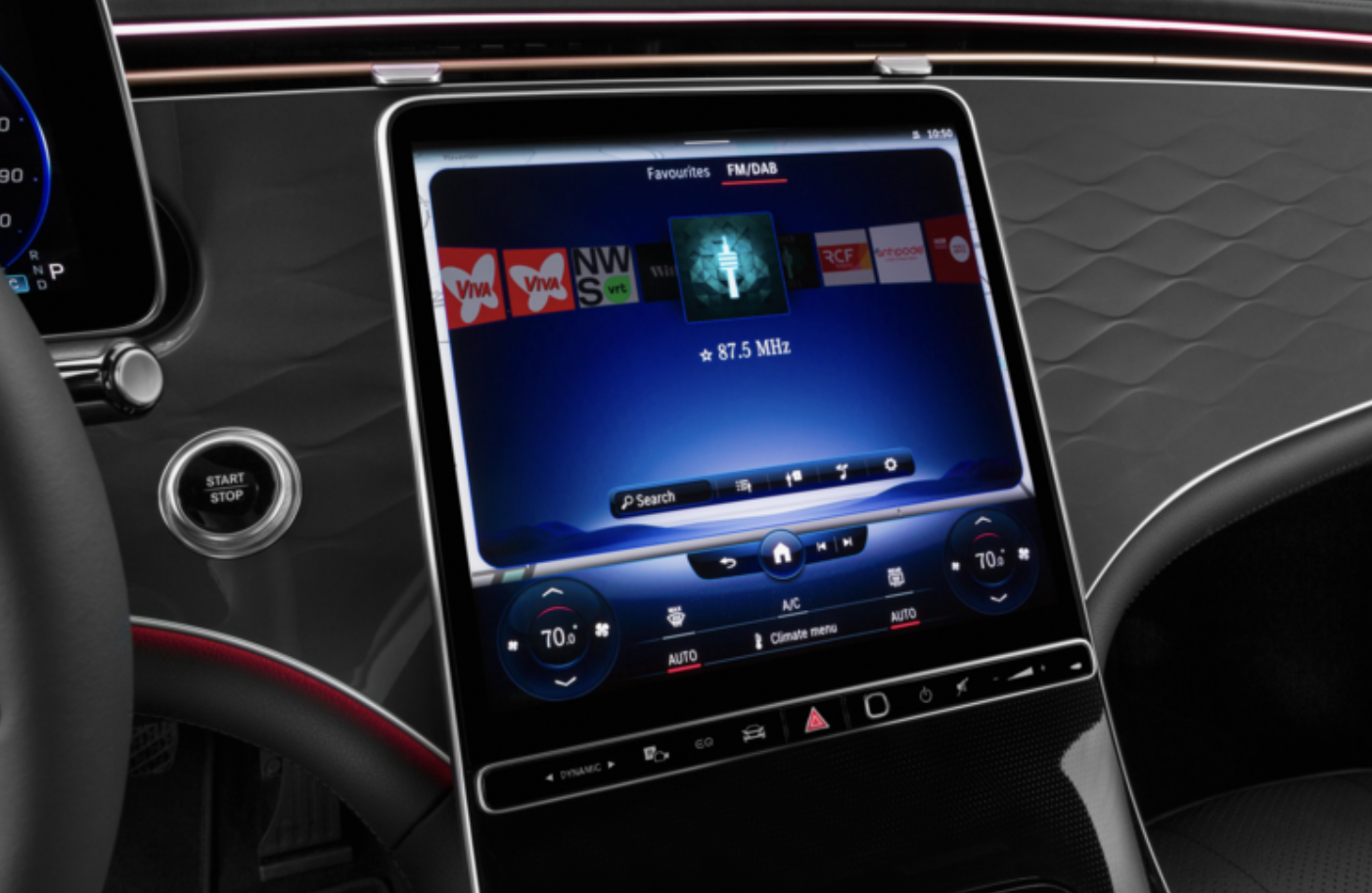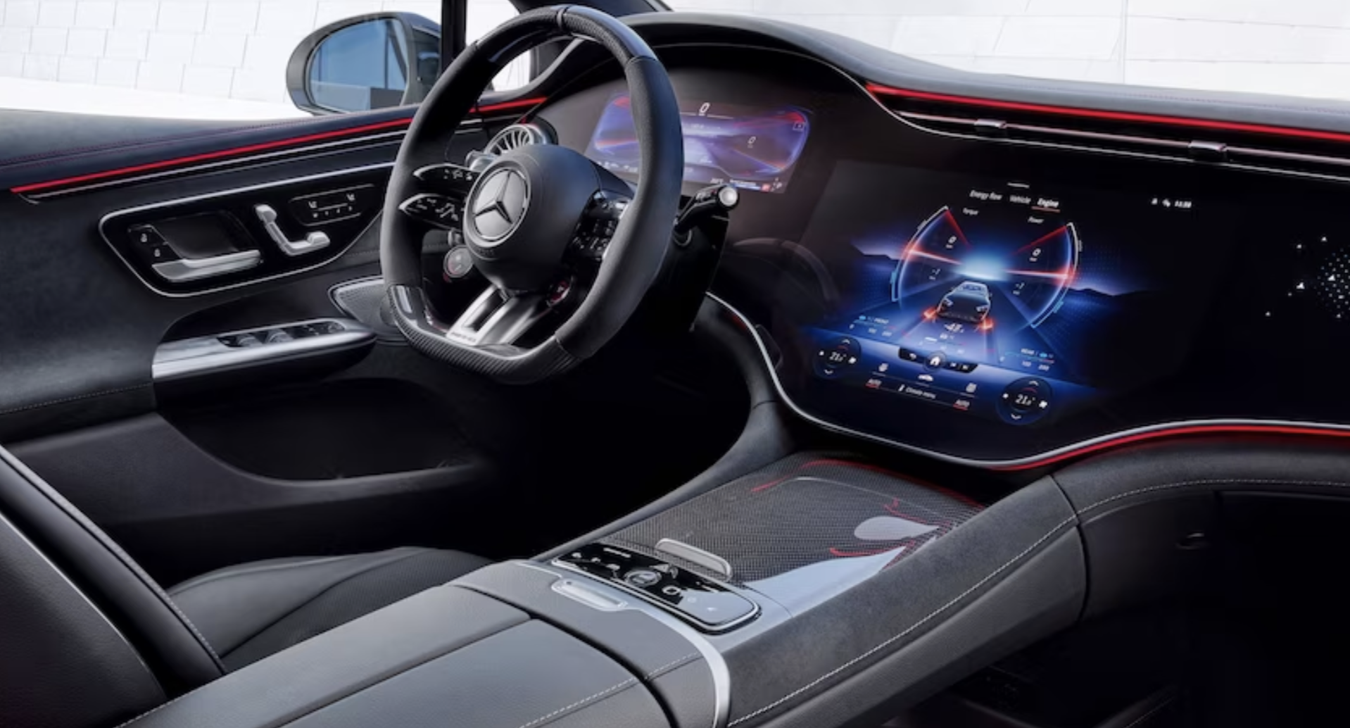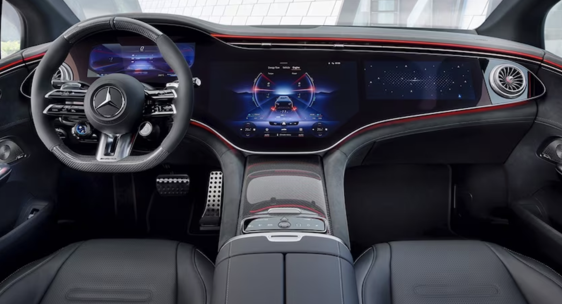EQE에 사용 가능한 장비에는 스스로 열고 닫히는 전동식 도어, 운전자를 식별하고 프로필을 활성화하는 지문 센서 및 안면 인식, 헤드업 디스플레이, 마사지 시트, 주변 조명 등이 포함됩니다. 보다 독특한 기술 기능 중 일부에는 Silver Waves, Roaring Pulse 및 Vivid Flux와 같은 이름의 "음향 풍경"을 구동할 수 있는 Burmester 사운드 시스템이 포함됩니다. EQE에는 차량 폭을 확장하고 하나의 거대한 곡선 스크린처럼 보이는 3개의 디스플레이 대시보드인 MBUX 하이퍼스크린 기능도 옵션으로 장착할 수 있습니다.