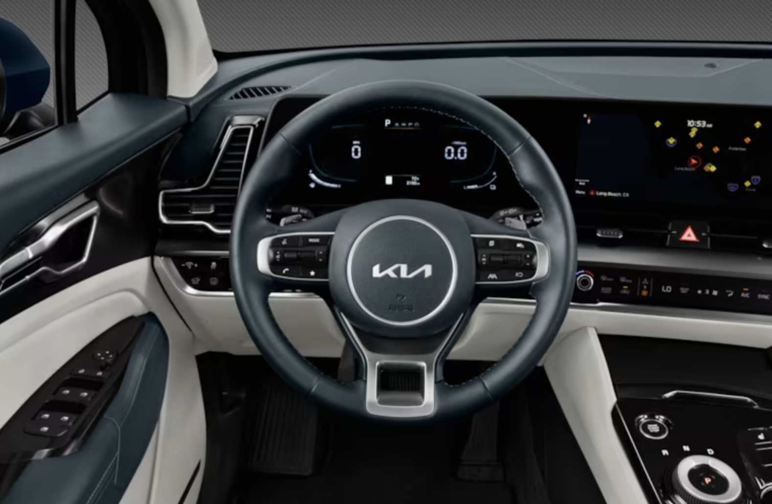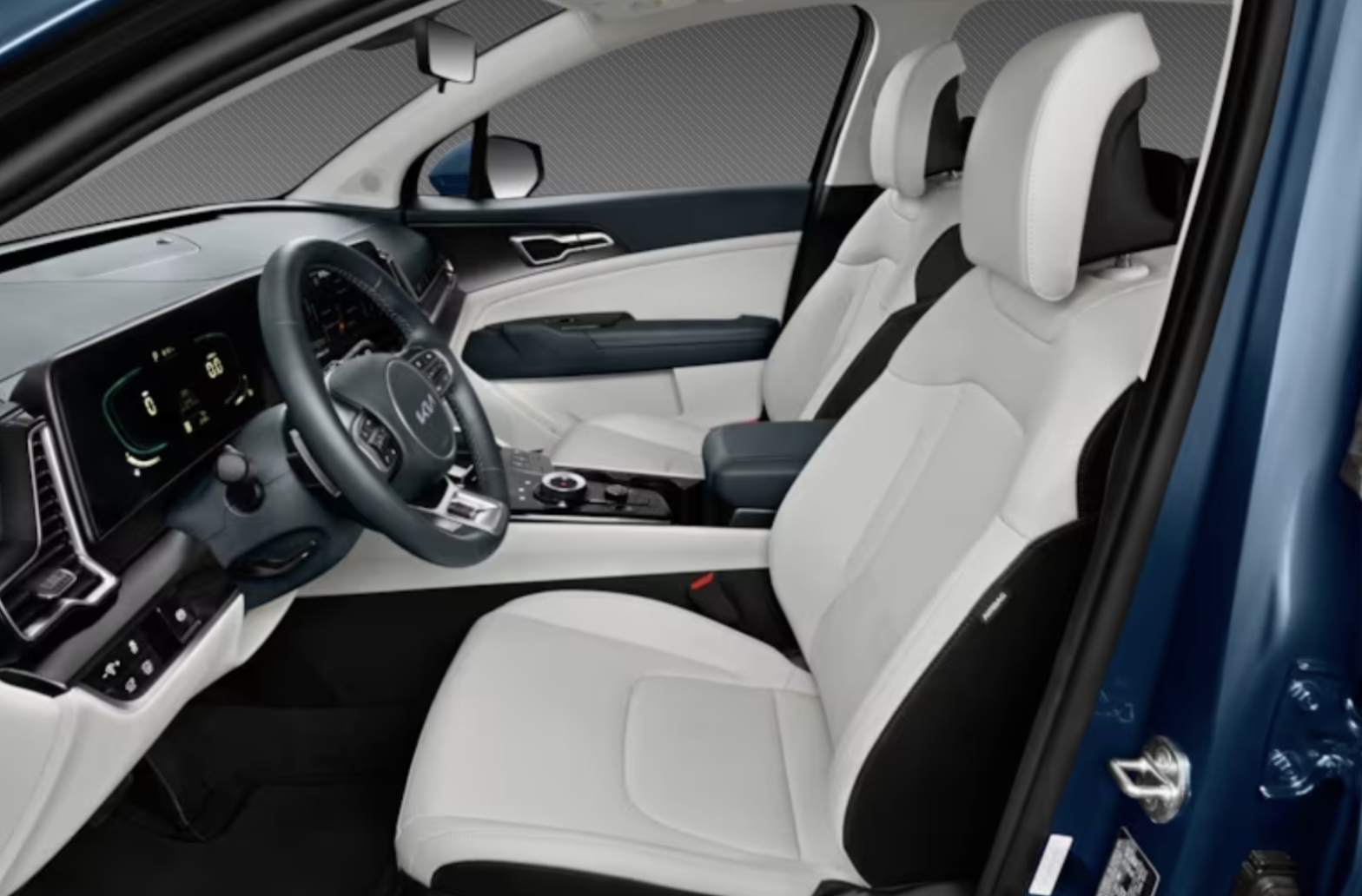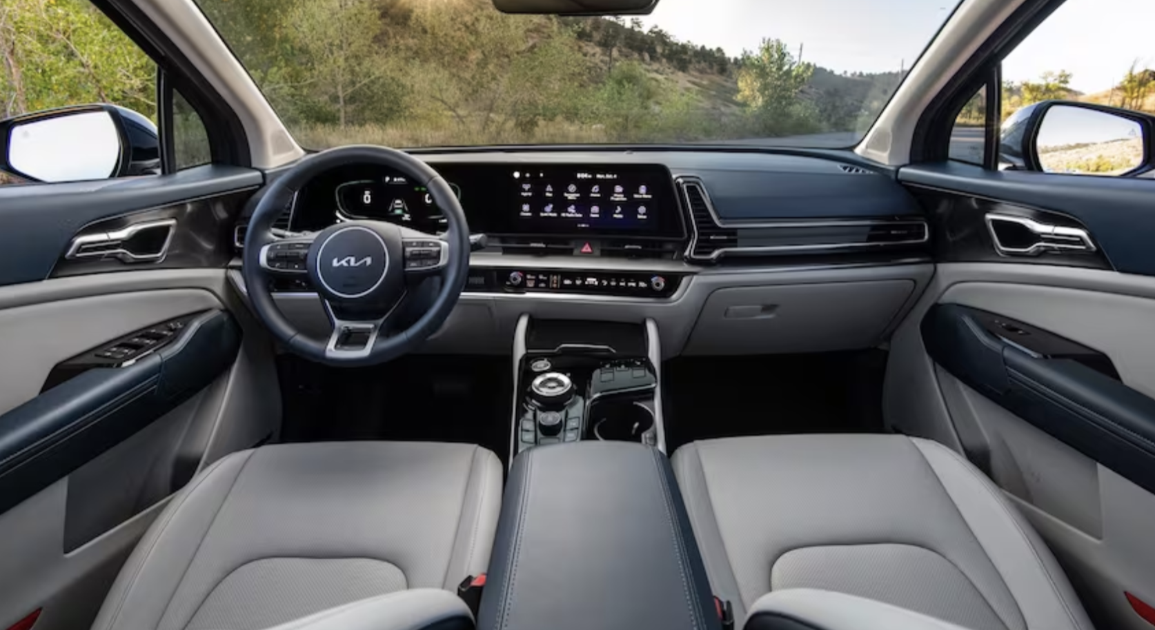 표준 스포티지와 마찬가지로 스포티지 하이브리드는 대시보드 전체에 확장되는 하나의 장치를 형성하기 위해 연결되는 듀얼 12.3인치 화면을 제공합니다. 첫 번째는 운전자 앞의 디지털 계기판이고, 다른 하나는 중앙 인포테인먼트 화면입니다. 인포테인먼트 화면 아래에는 실내 온도 조절 및 오디오 제어를 위한 터치패드가 있습니다.