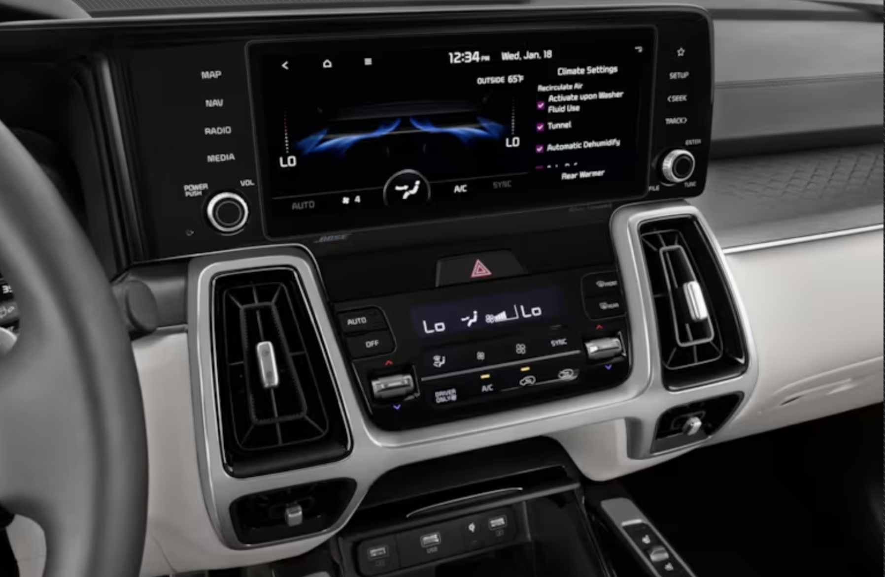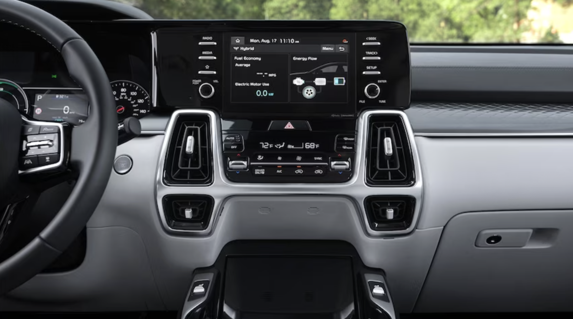2023 쏘렌토 하이브리드 EX는 많은 표준 기술을 제공합니다. LED 자동 헤드라이트와 안개등이 장착되어 있으며 전자열쇠를 사용하면 열쇠 없이 출입하고 원격 시동이 가능합니다. 내부에는 푸시 버튼 시동, 자동 밝기 조절 백미러, 조명 화장 거울, 무선 스마트폰 충전기, 전동 운전석, 열선내장 앞좌석, 2열 통풍구가 있는 이중 구역 실내 온도 조절 시스템이 갖춰져 있습니다. 10.3인치 터치스크린, 스피커 6개, Apple CarPlay 및 Android Auto 호환성도 갖추고 있습니다.