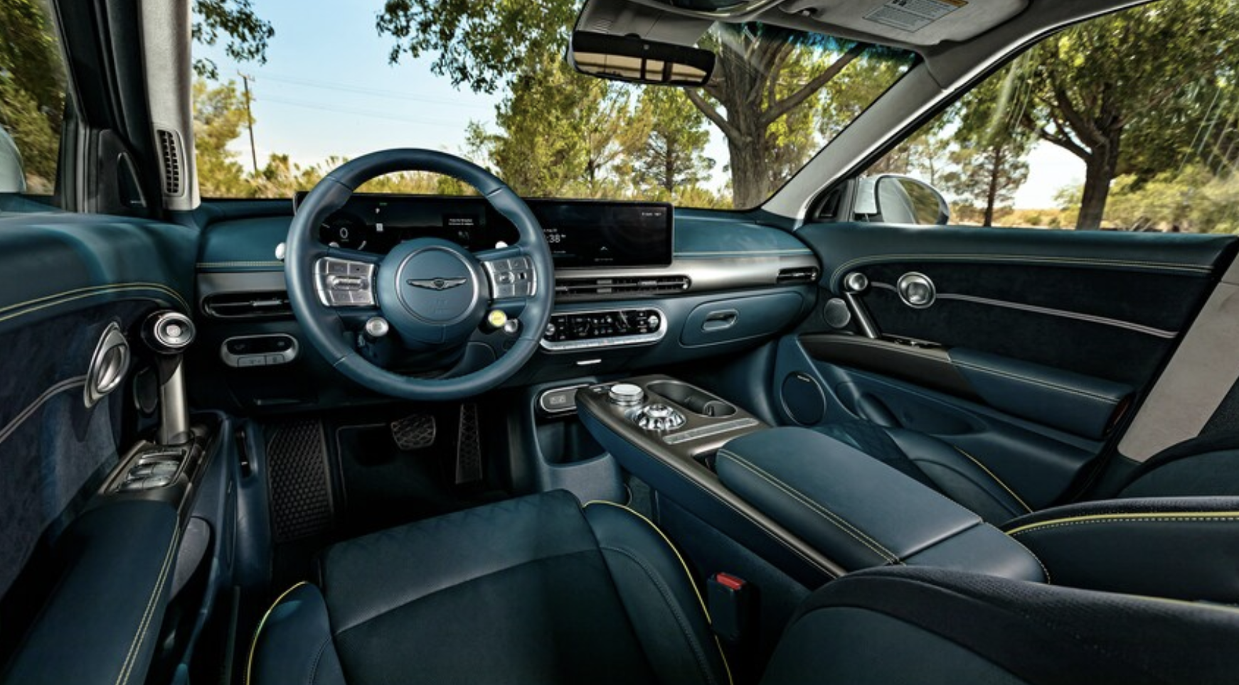 GV60의 고급 트림과 퍼포먼스 트림은 본질적으로 동일한 기술 기능을 갖추고 있습니다. 두 모델 모두 듀얼 12.3인치 디지털 디스플레이를 갖추고 있는데, 하나는 게이지 클러스터용이고 다른 하나는 인포테인먼트 터치스크린용입니다. 해당 터치스크린에는 Apple CarPlay, Android Auto, 내장 내비게이션 및 위성 HD 라디오가 탑재되어 있습니다.