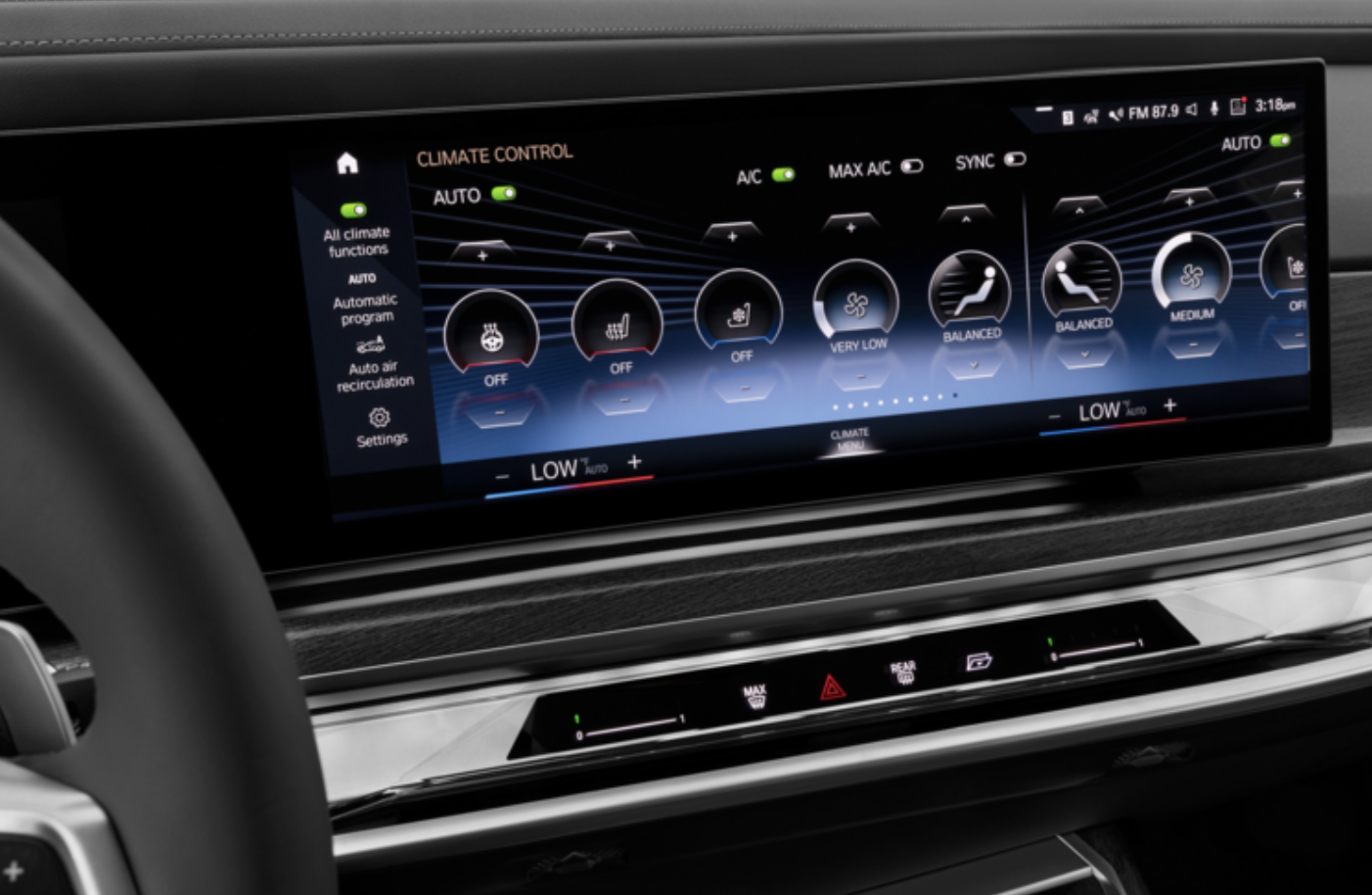 BMW 인터랙션 바라고 불리는 새로운 기능은 출입에 반응하고 실내 온도 조절을 위한 터치 컨트롤을 수용하며 주변 조명 시스템의 기능을 향상시키는 실내 전체 너비의 조명 스트립입니다. 또한 각 뒷문에 새로운 5.5인치 터치스크린 디스플레이가 통합되어 승객이 다양한 편의 및 미디어 설정을 제어할 수 있습니다.