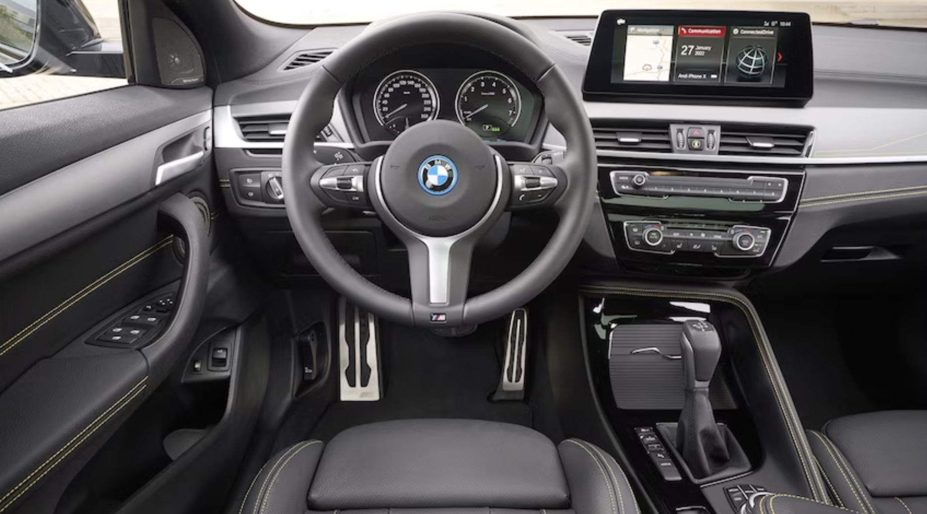 그래픽은 크로스오버 외부의 세부 사항과 일치하는 실내를 덮습니다. BMW는 또한 실내의 거의 모든 요소에 골드 콘트라스트 스티치를 적용했습니다. 게다가 바닥 매트에도 Giallo Oro 트림이 적용되어 있습니다.