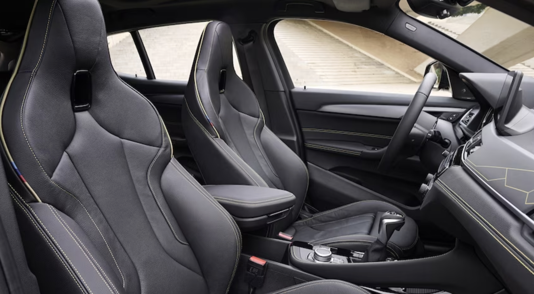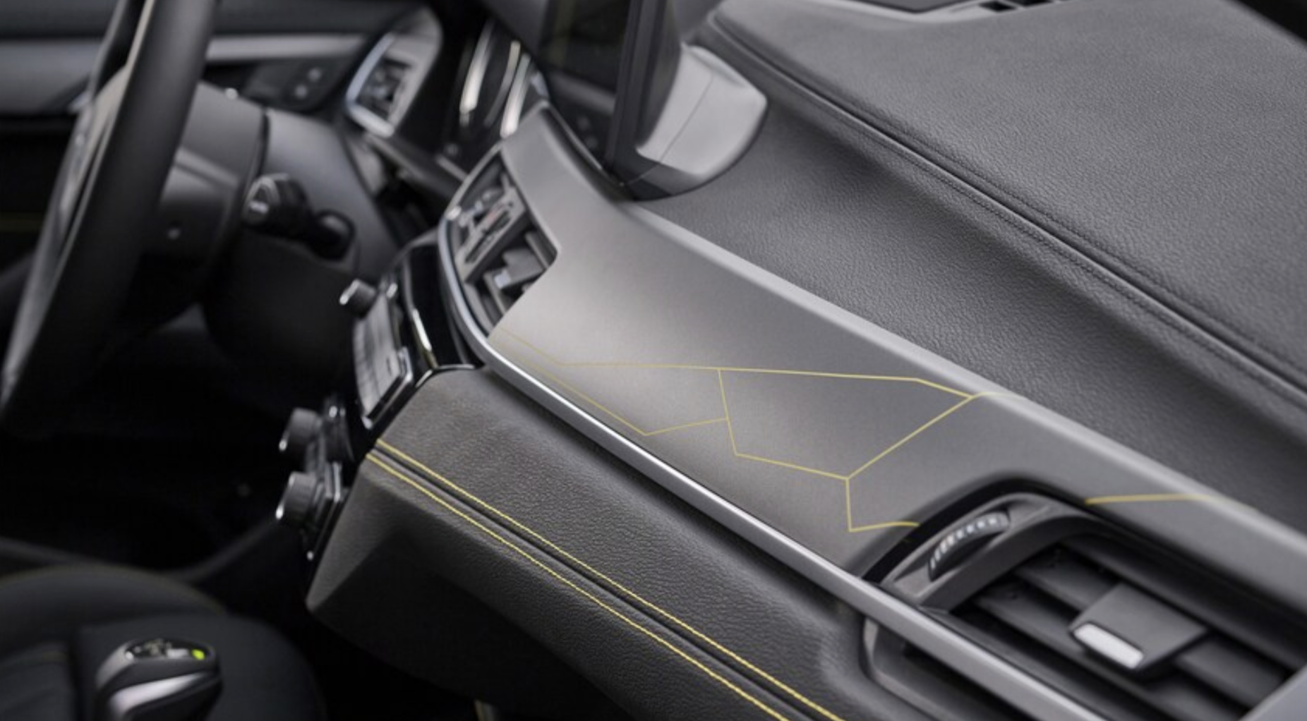 그래픽은 크로스오버 외부의 세부 사항과 일치하는 실내를 덮습니다. BMW는 또한 실내의 거의 모든 요소에 골드 콘트라스트 스티치를 적용했습니다. 게다가 바닥 매트에도 Giallo Oro 트림이 적용되어 있습니다.