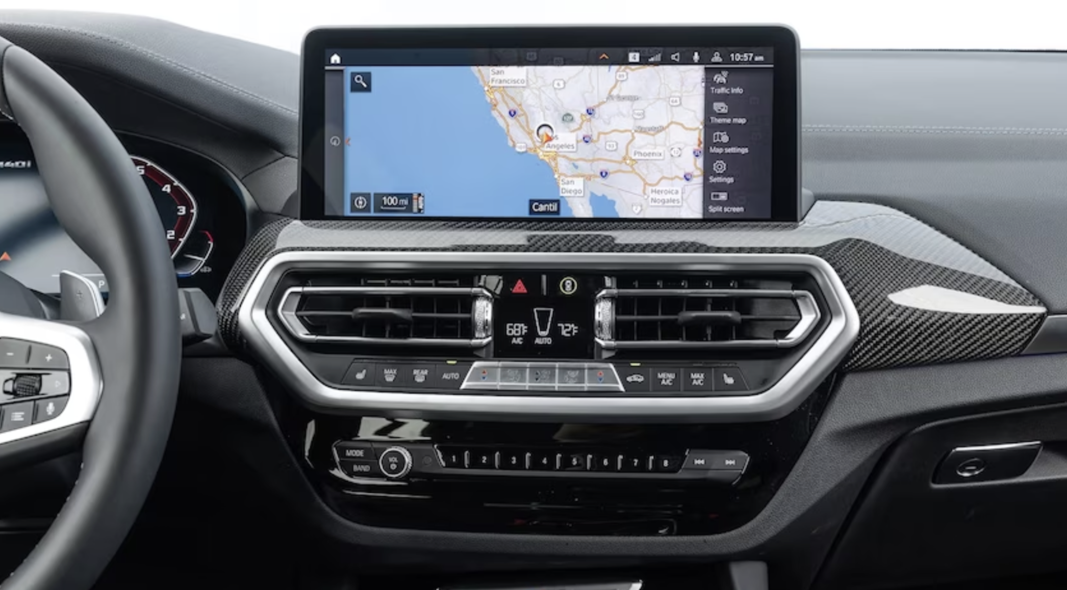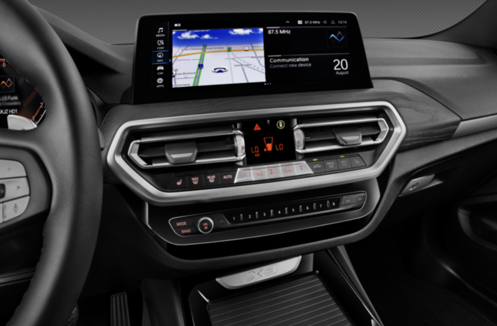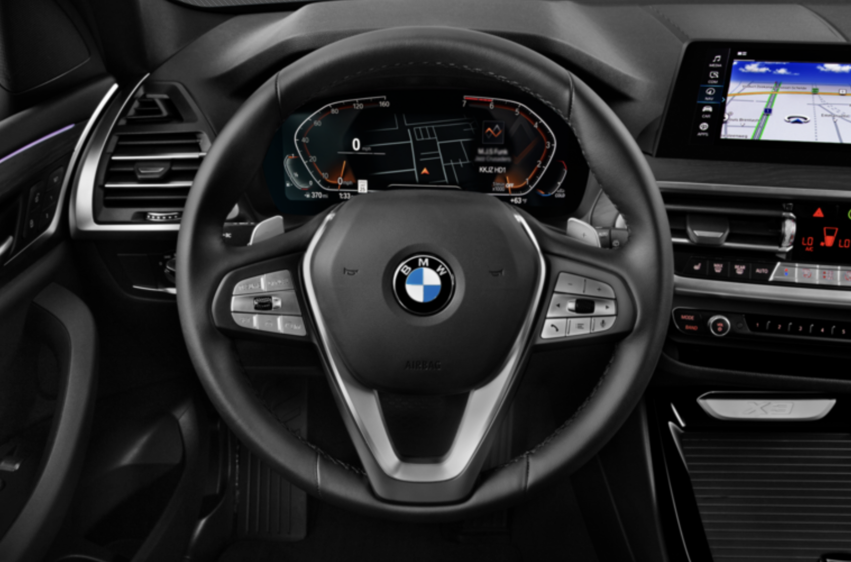 X3 기본 사양에는 10.3인치 인포테인먼트 터치스크린과 5.7인치 게이지 클러스터 디스플레이가 탑재 되었습니다. 고급 모델은 두 위치 모두에 듀얼 12.3인치 화면을 제공합니다. Apple CarPlay와 Android Auto는 어느 쪽이든 포함되어 있습니다. 2열 모두 USB 포트가 기본으로 제공되며, 무선 충전 패드도 제공됩니다. 프리미엄 기술 옵션에는 헤드업 디스플레이, 360도 카메라 시스템, 16스피커 오디오 시스템이 포함됩니다.