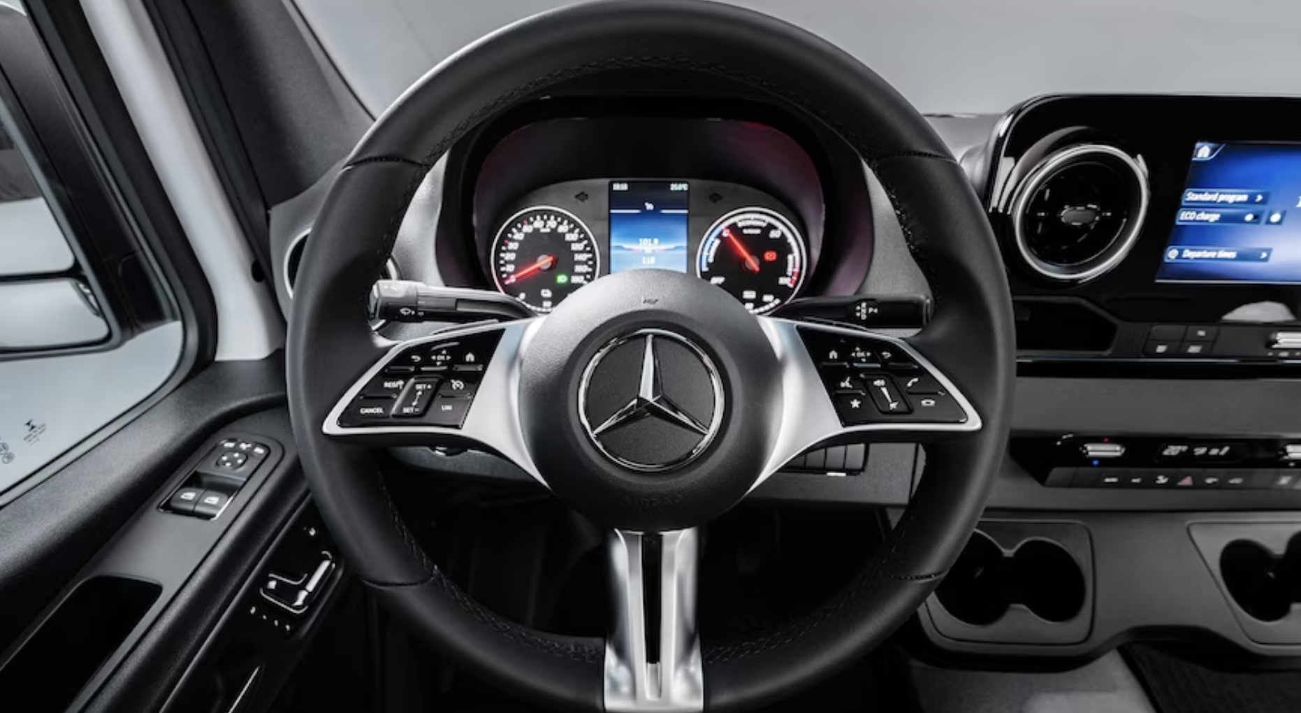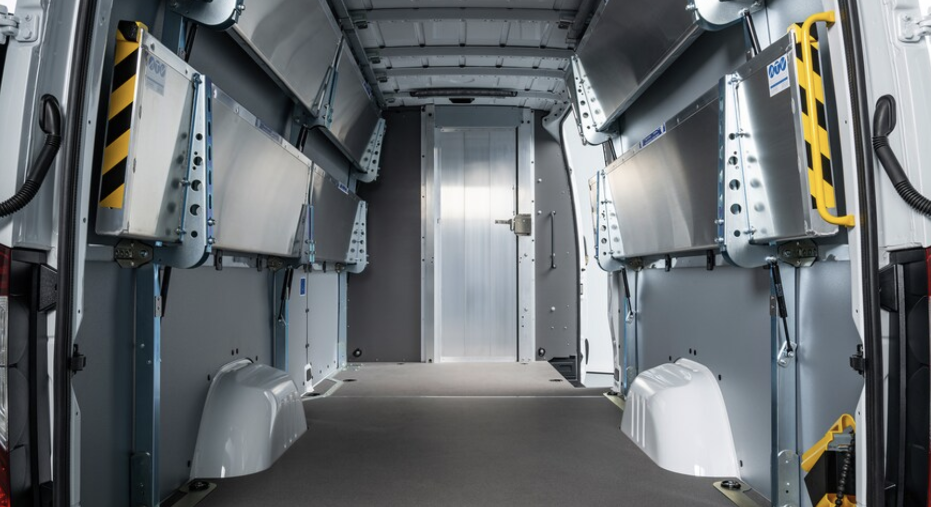메르세데스 벤츠는 e스프린터의 양쪽에서 최대 3.3m, 뒤쪽에서 최대 2.7m까지 효과적인 가시성을 갖춘 사각지대 모니터링을 포함한 일련의 표준 안전 기술을 갖추고 있습니다. 또한 360도 주차 보조 카메라 뷰와 80.4km/h 이상의 속도로 직선 주행을 유지하기 위해 돌풍이 일어나는 차량 측면에 브레이크를 자동으로 배치할 수 있는 측풍 보조 시스템이 장착되어 있습니다.