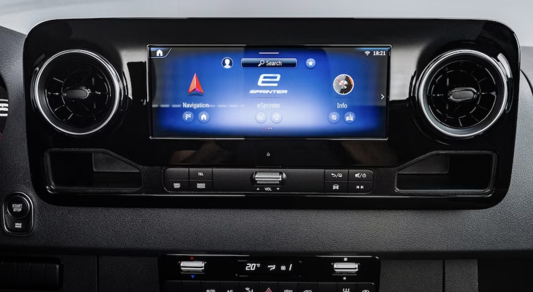 MBUX로 약칭되는 메르세데스 벤츠 User Experience 인포테인먼트 제품군은 e스프린터의 표준입니다. 이 시스템은 Android Auto, Apple CarPlay 및 음성 명령을 제공합니다. 10.3인치 디스플레이에는 주행 거리, 사용 가능한 충전소, 교통 상황을 고려한 경로 계획 기능이 내장된 내비게이션 기능도 있습니다. 기타 사용 가능한 기능으로는 전동 앞좌석, 전동식 슬라이딩 도어 및 계단, 열선내장 앞유리, 자동 실내 온도 조절 장치 등이 있습니다.