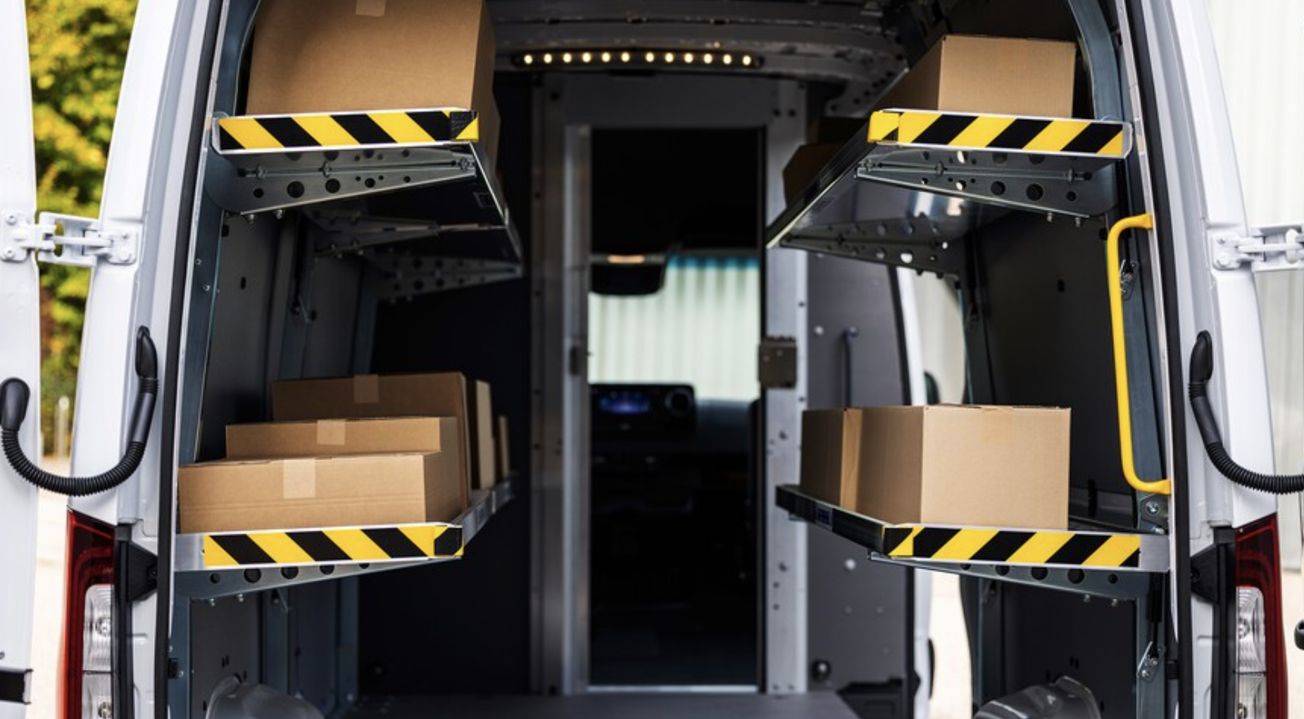 메르세데스 벤츠는 e스프린터의 양쪽에서 최대 3.3m, 뒤쪽에서 최대 2.7m까지 효과적인 가시성을 갖춘 사각지대 모니터링을 포함한 일련의 표준 안전 기술을 갖추고 있습니다. 또한 360도 주차 보조 카메라 뷰와 80.4km/h 이상의 속도로 직선 주행을 유지하기 위해 돌풍이 일어나는 차량 측면에 브레이크를 자동으로 배치할 수 있는 측풍 보조 시스템이 장착되어 있습니다.