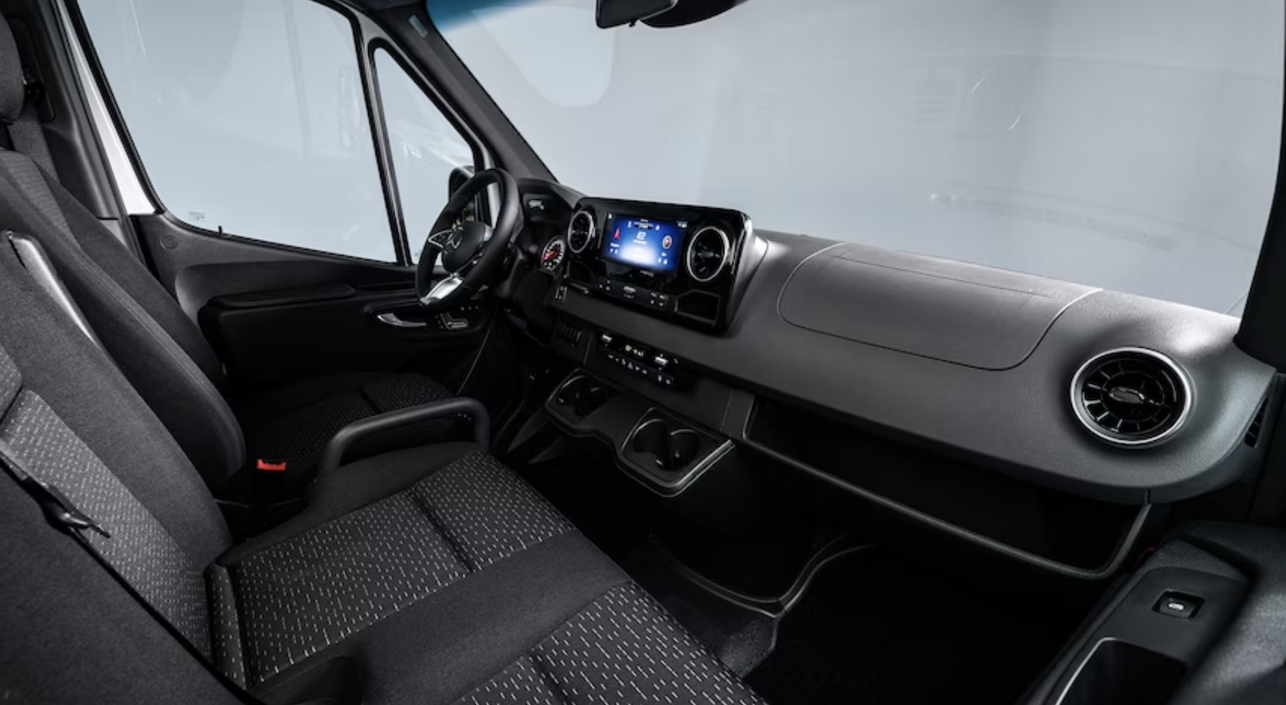 MBUX로 약칭되는 메르세데스 벤츠 User Experience 인포테인먼트 제품군은 e스프린터의 표준입니다. 이 시스템은 Android Auto, Apple CarPlay 및 음성 명령을 제공합니다. 10.3인치 디스플레이에는 주행 거리, 사용 가능한 충전소, 교통 상황을 고려한 경로 계획 기능이 내장된 내비게이션 기능도 있습니다. 기타 사용 가능한 기능으로는 전동 앞좌석, 전동식 슬라이딩 도어 및 계단, 열선내장 앞유리, 자동 실내 온도 조절 장치 등이 있습니다.
