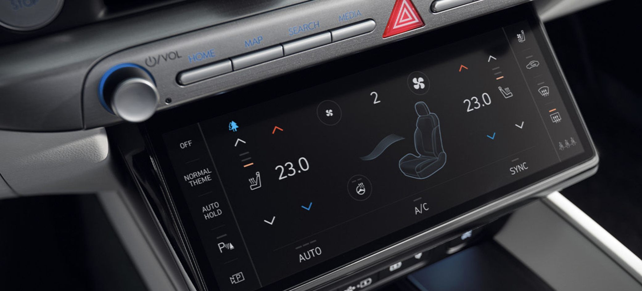 | 자외선 살균 시스템 / 실내 항균 처리 소재 | 플로어 콘솔 내부에 UVC 살균 기능을 도입하고, 시트 및 실내 주요 부위에 항균 소재를 사용하여 공조 기능 작동 시 광촉매를 통해 냄새 유발물질을 제거하여 위생적인 실내 환경을 제공합니다. |