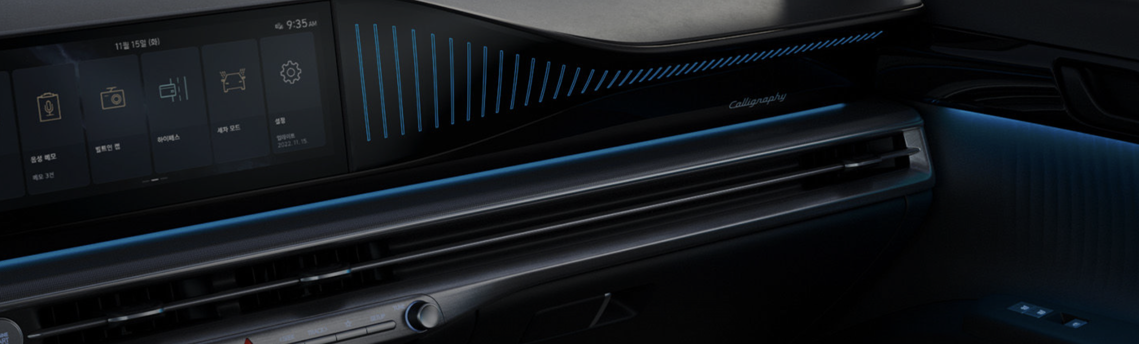 | 드라이브 모드 | 스티어링 휠의 드라이브 모드 버튼을 조작할 때, 각 모드에 따라 다른 무빙과 컬러가 표현되어 사용자에게 시각적인 효과를 제공합니다. |