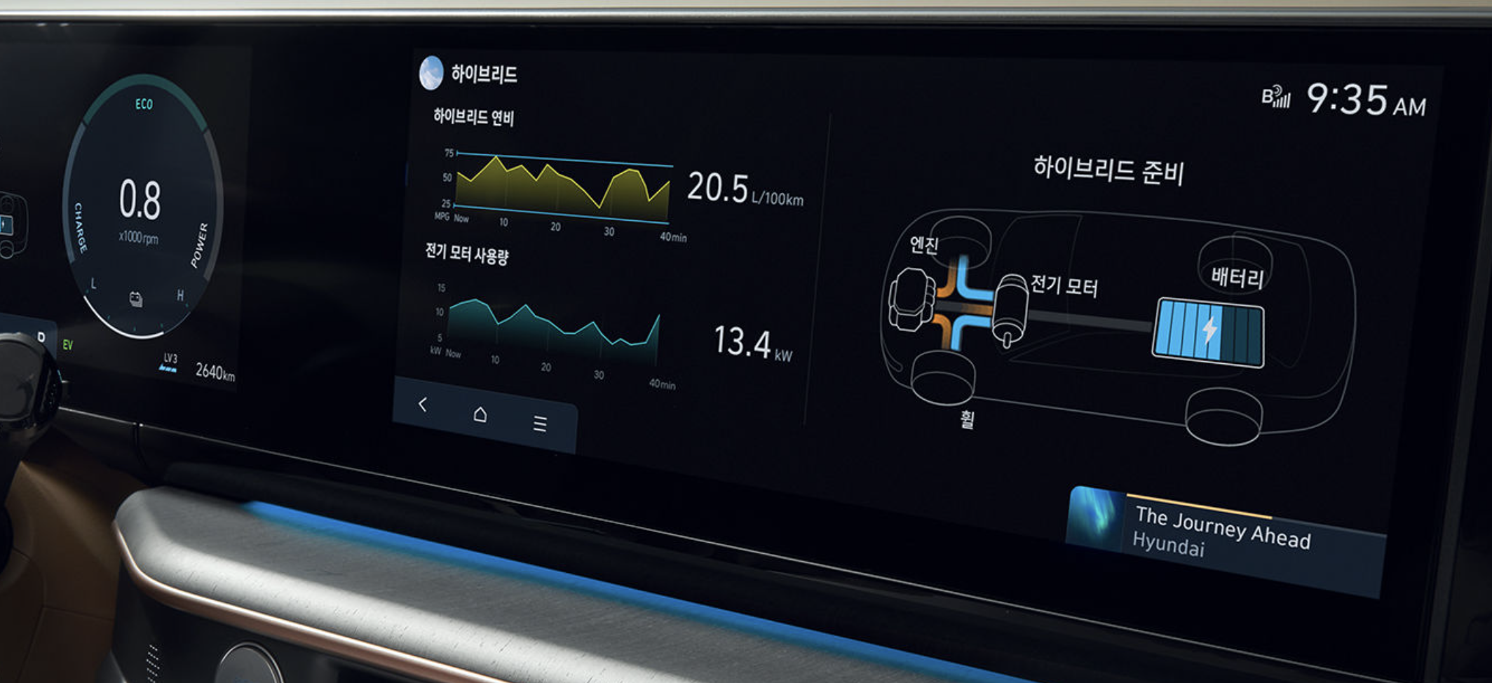 | 하이브리드 전용 컨텐츠 | 차량의 전기 모터 사용량과 하이브리드 연비 등 하이브리드 주행에 특화된 다양한 정보와 콘텐츠를 제공합니다. |