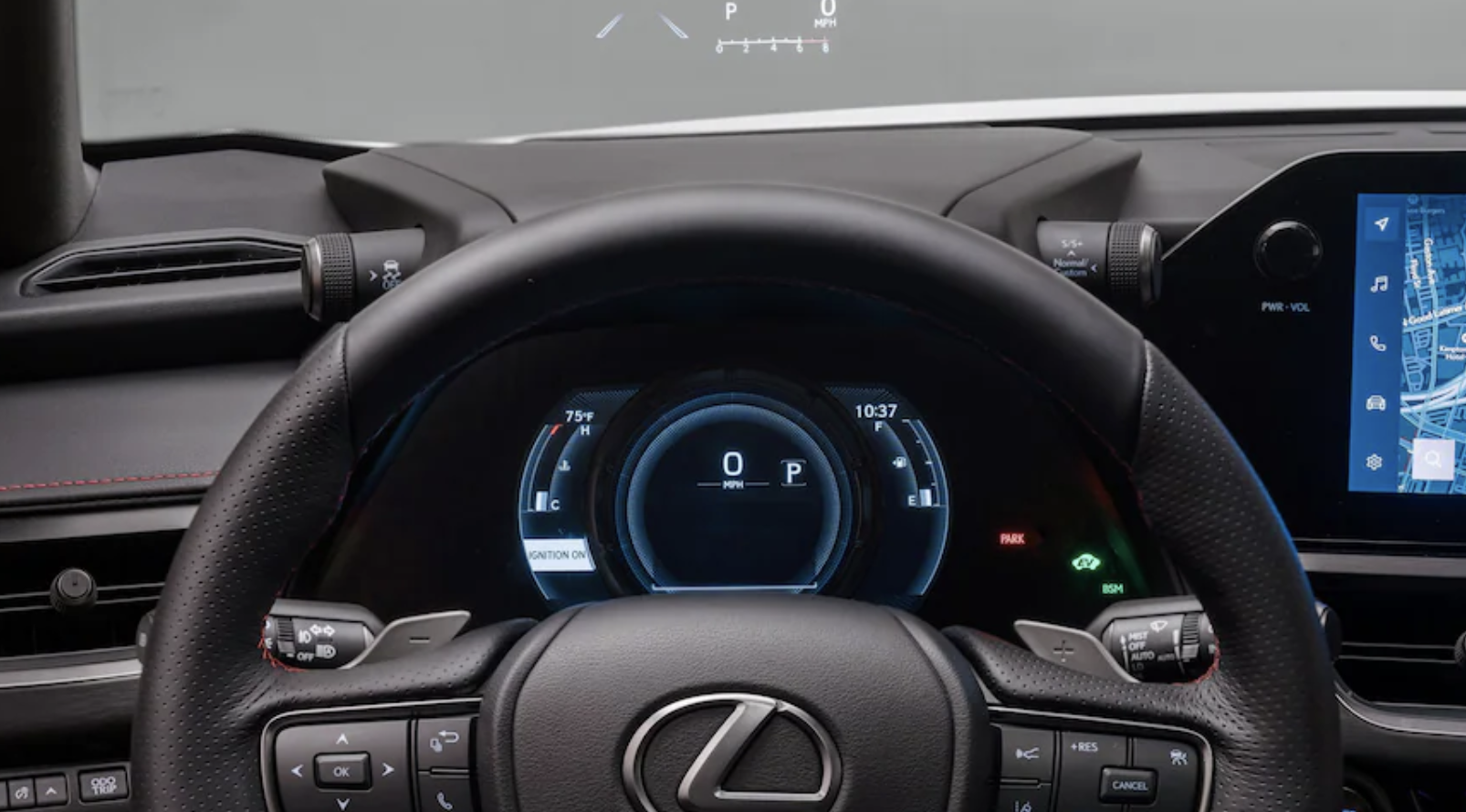 기본 UX250h 트림 레벨에는 8.0인치 인포테인먼트 터치스크린이 있고, 고급 버전에는 12.3인치 장치가 있습니다. 무선 Apple CarPlay 및 Android Auto 연결은 상관없이 호환됩니다. UX250h의 모든 버전에는 디지털 게이지 디스플레이가 있지만 헤드업 디스플레이는 선택 사항입니다. 기타 프리미엄 기술로는 내장 내비게이션, 10스피커 오디오 시스템 및 무선 장치 충전 패드가 포함됩니다.
