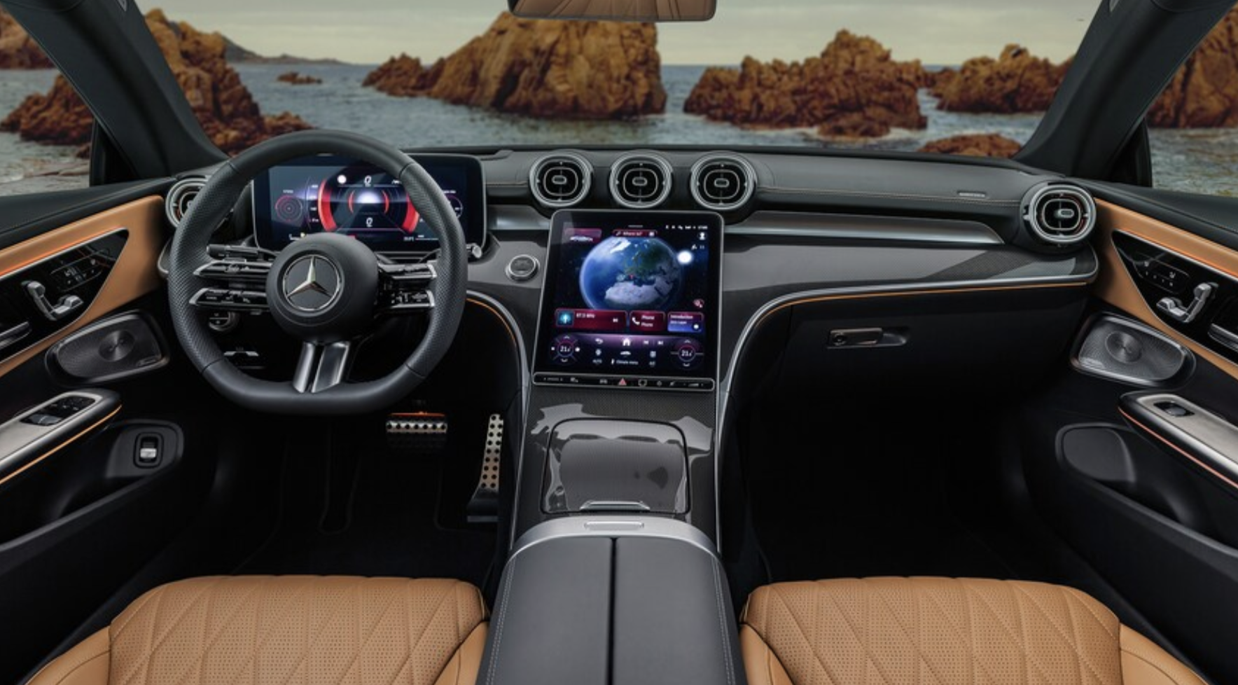 11.9인치 인포테인먼트 화면은 실내 전면과 중앙에 위치하며 12.3인치 디지털 운전자 디스플레이로 보완됩니다. 2024 E-클래스와 동일한 새로운 전자 아키텍처를 사용하여 5G 데이터 전송 기능을 제공합니다. 새로운 E-클래스와 마찬가지로 TikTok, Webex, Zoom 및 Angry Birds와 같은 앱이 제공됩니다.
