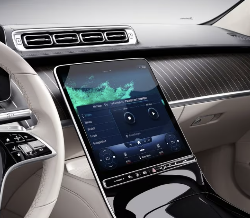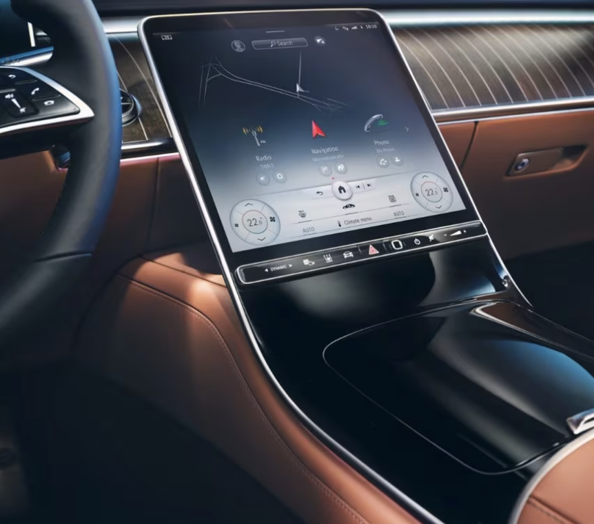 2024 S-클래스는 디지털 기능이 풍부한 내부를 자랑합니다. 12.3인치 게이지 클러스터 디스플레이와 12.8인치 인포테인먼트 터치스크린이 함께 제공되며, 사용자 인터페이스는 음성 명령을 통해 다양한 작업을 처리합니다.