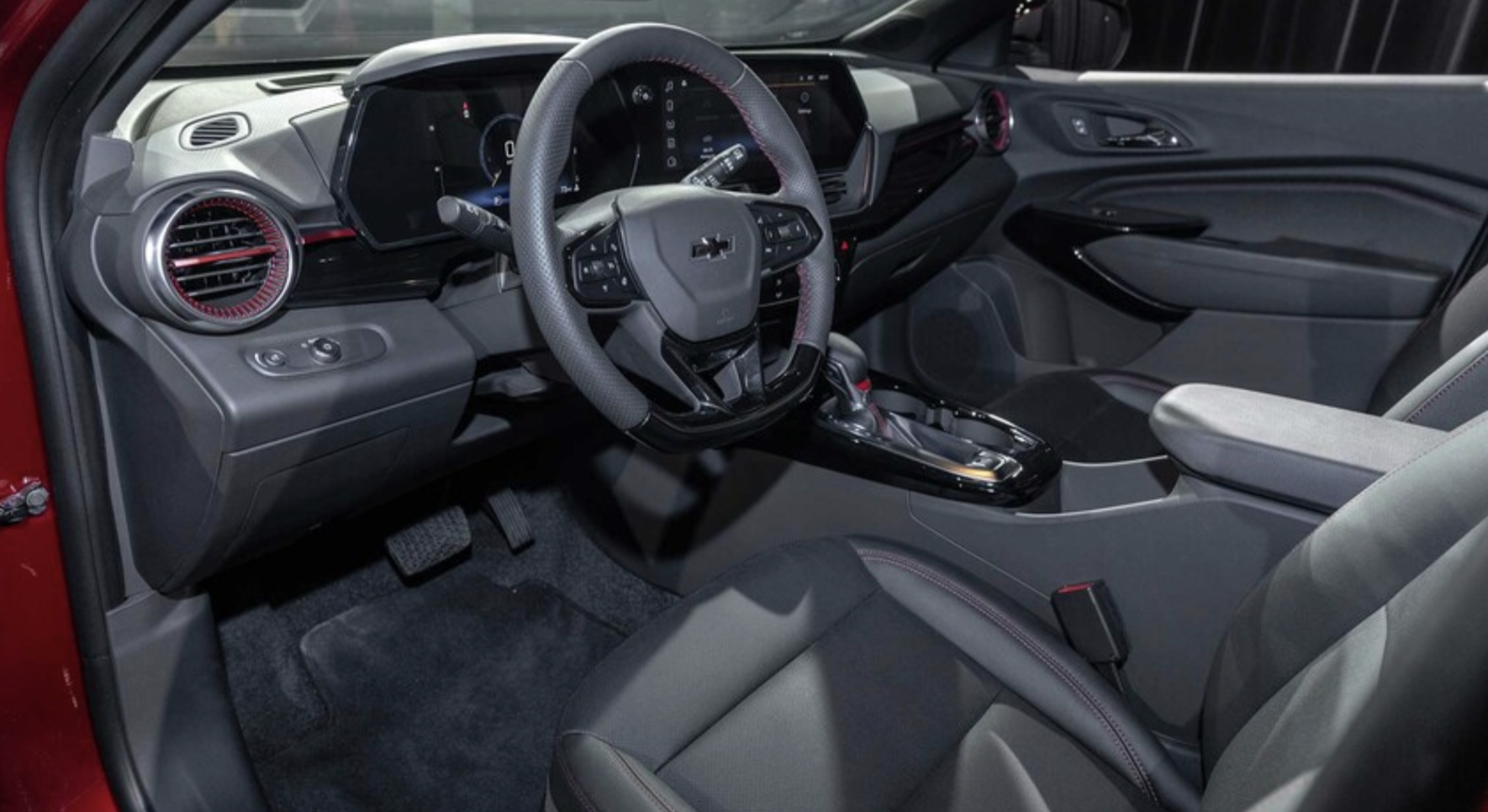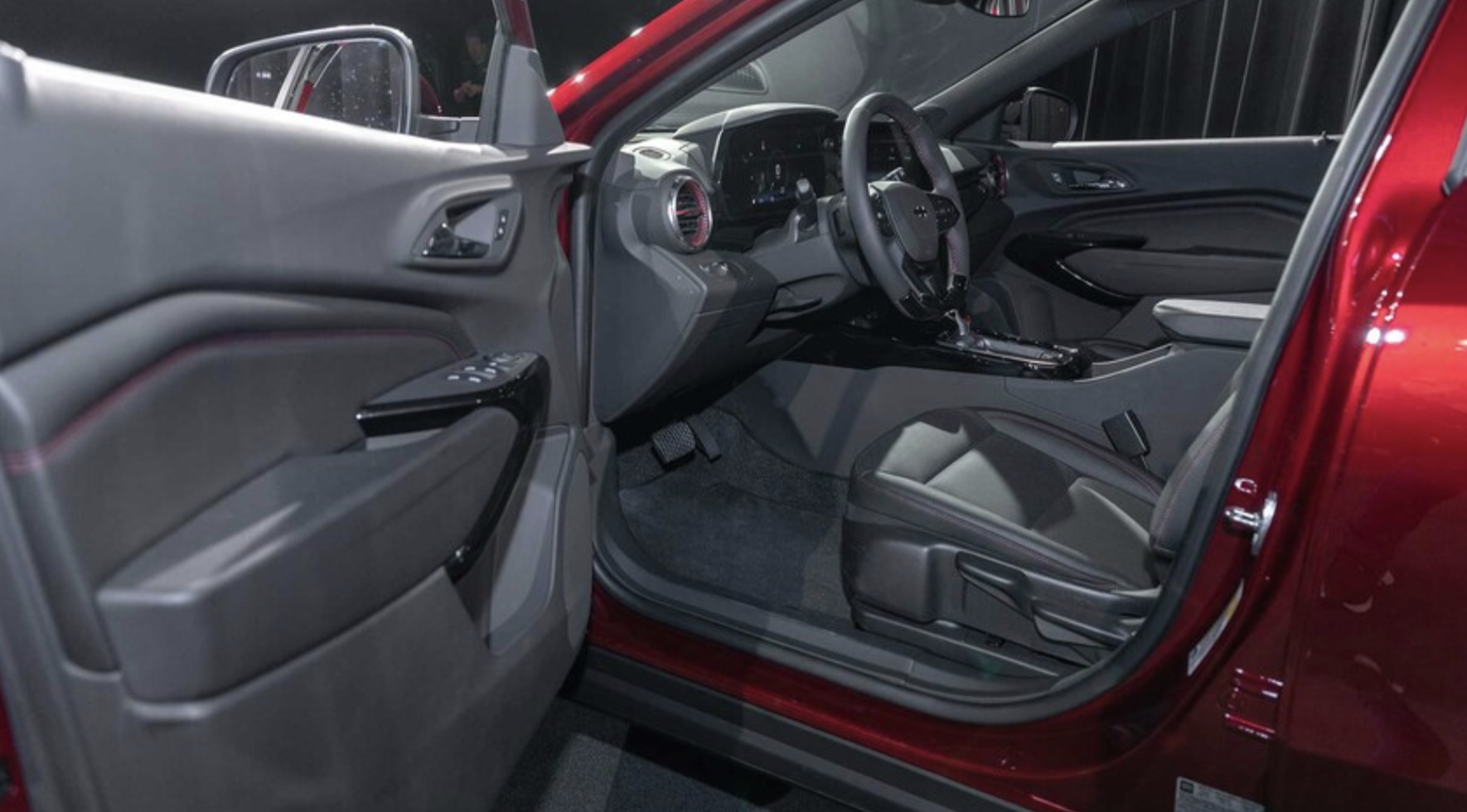 트랙스 LS 및 1RS 트림에는 8.0인치 인포테인먼트 터치스크린이 있고, LT, 2RS 및 Activ 트림은 11.0인치 장치로 업그레이드 됩니다. 두 화면 모두 무선 Apple CarPlay 및 Android Auto와 호환됩니다. LT, 2RS 및 Activ 트림에도 8.0인치 완전 디지털 게이지 디스플레이가 제공됩니다. USB 포트는 앞줄에 표준으로 제공되며 세 가지 고급 트림의 두 번째 줄에 추가됩니다. 무선 충전 패드도 옵션 목록에 있습니다.