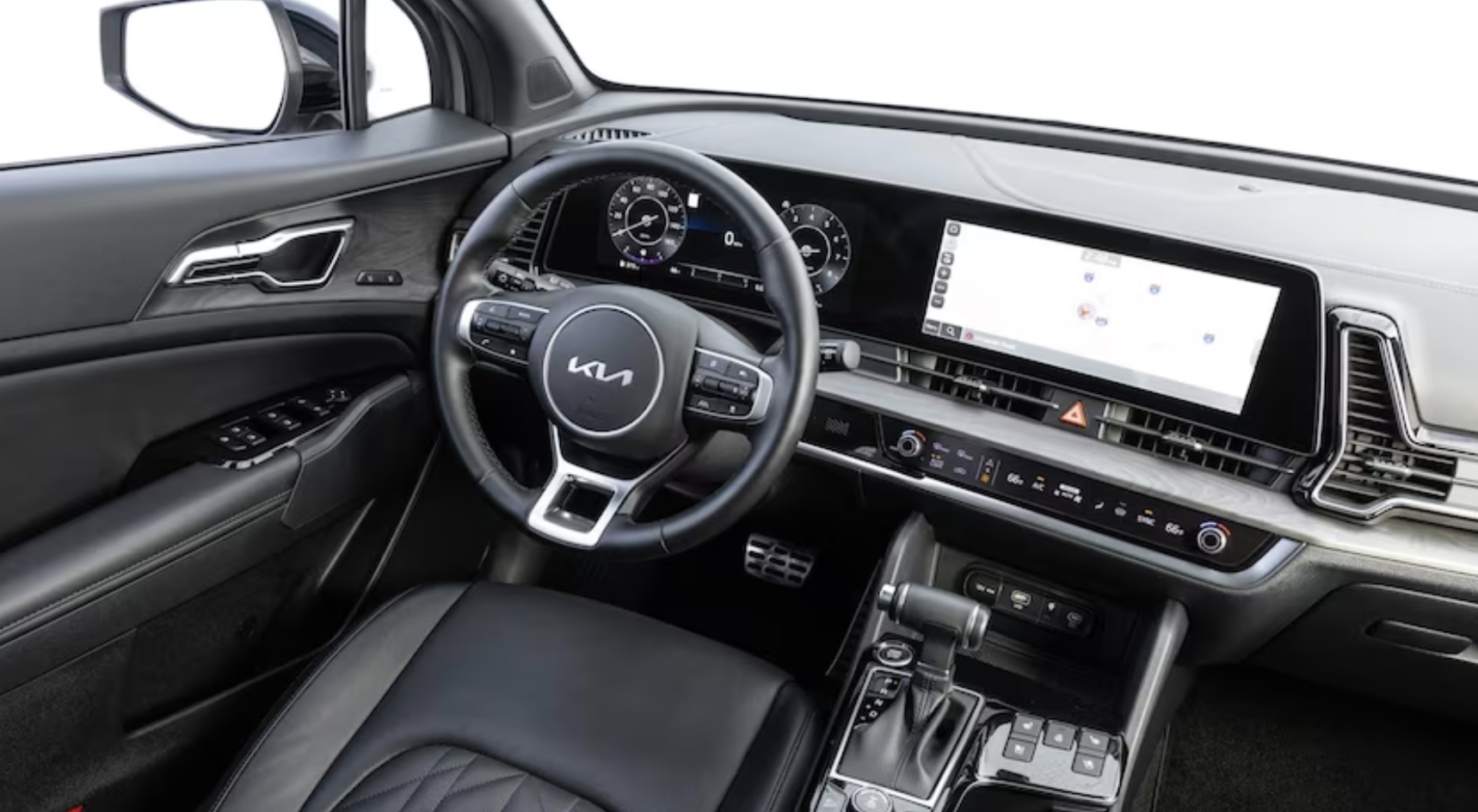 모든 스포티지에는 기존 아날로그 다이얼 대신 12.2인치 또는 12.3인치 크기의 대형 디지털 계기판이 장착되어 있습니다. 보급형 모델에는 8.0인치 인포테인먼트 터치스크린이 있고, 다른 모든 모델에는 12.3인치 장치가 있습니다. 둘 다 Apple CarPlay와 Android Auto가 탑재되어 있습니다. 앞줄 USB 충전 포트가 표준입니다.