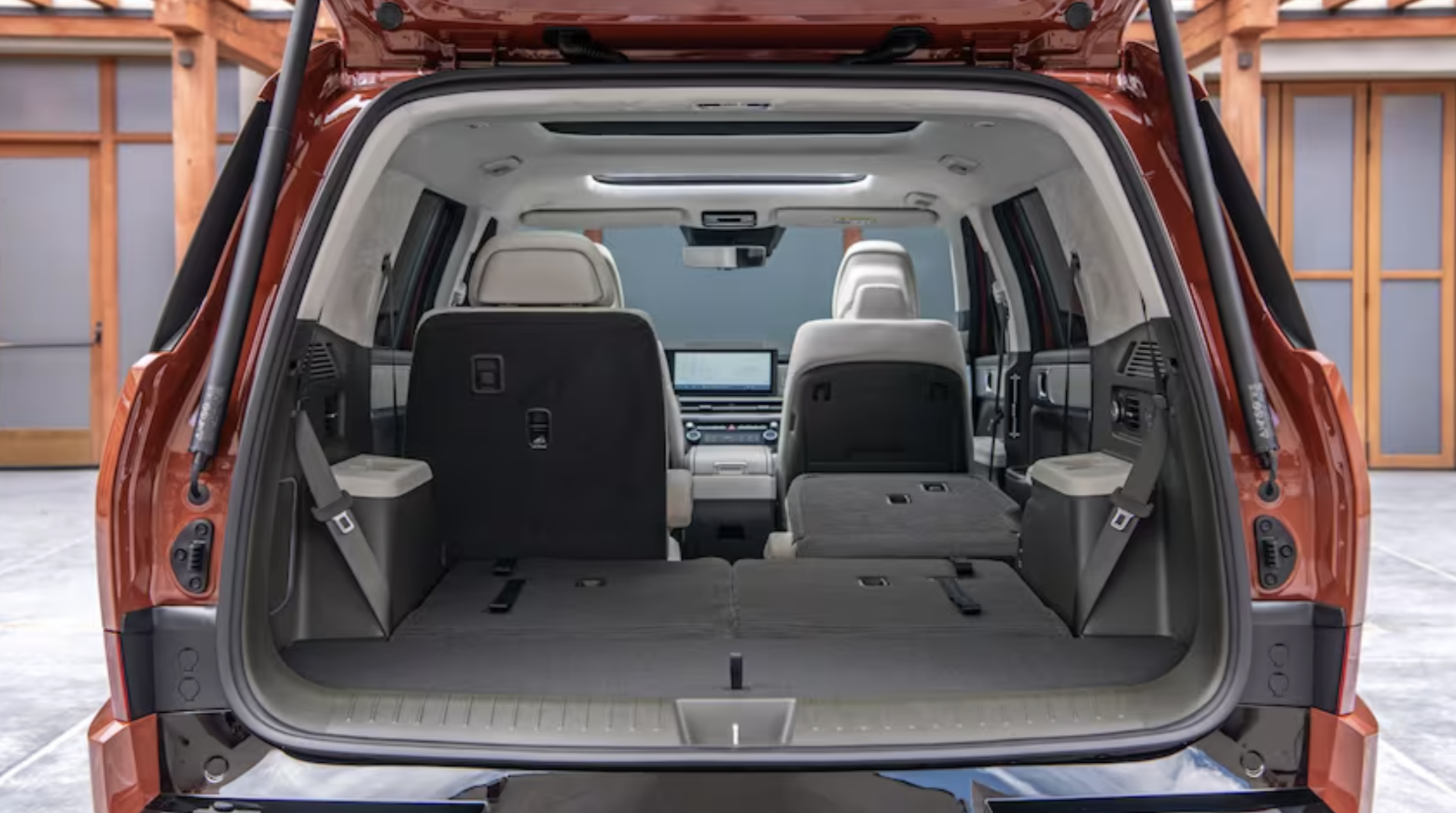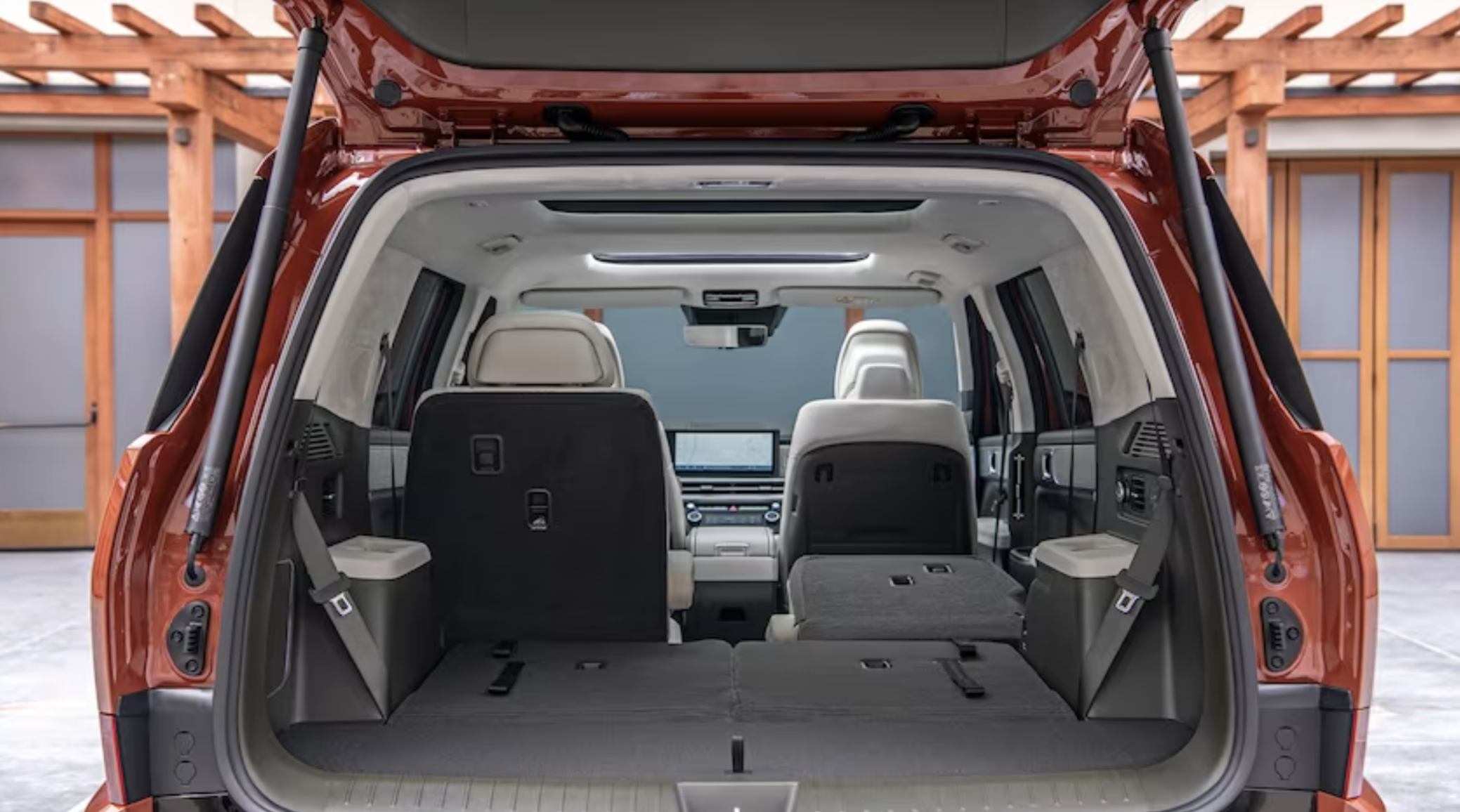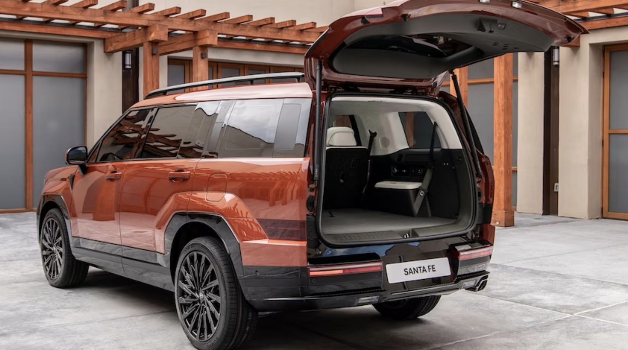 신형 싼타페는 3열 좌석, 더 넓은 후면 개구부, 이전보다 더 넓은 테일게이트를 갖추고 있습니다. 뒷좌석은 플러시를 바닥으로 접어 적재 표면을 더 평평하게 만듭니다.