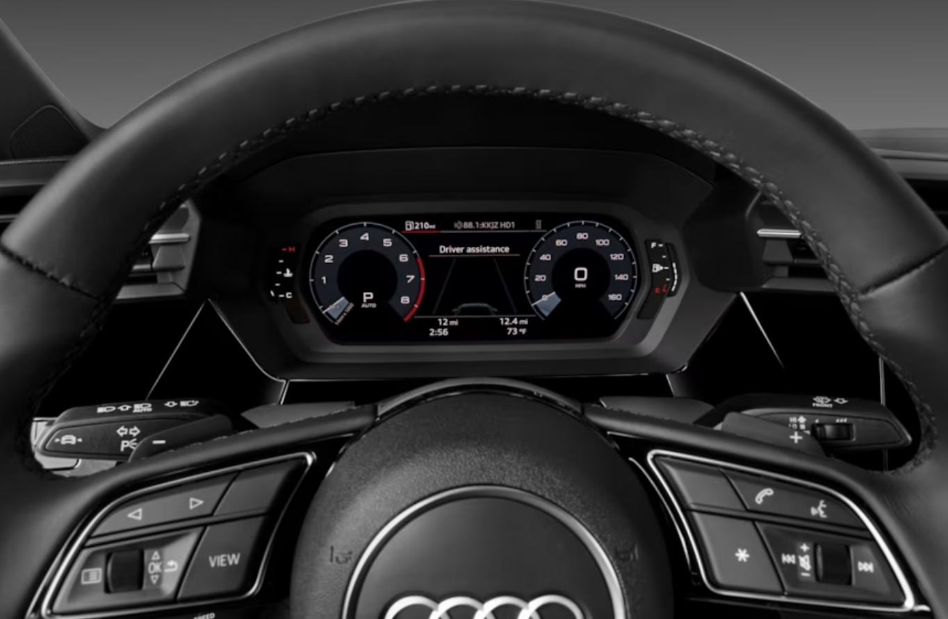 모든 2024 A3에는 10.1인치 중앙 터치스크린은 물론 무선 Apple CarPlay 및 Android Auto 호환성도 함께 제공됩니다. 기본 모델에는 10.3인치 디지털 게이지 클러스터가 장착되어 있으며, 상위 트림에는 아우디의 12.3인치 가상 조종석 디스플레이가 채택되었습니다.