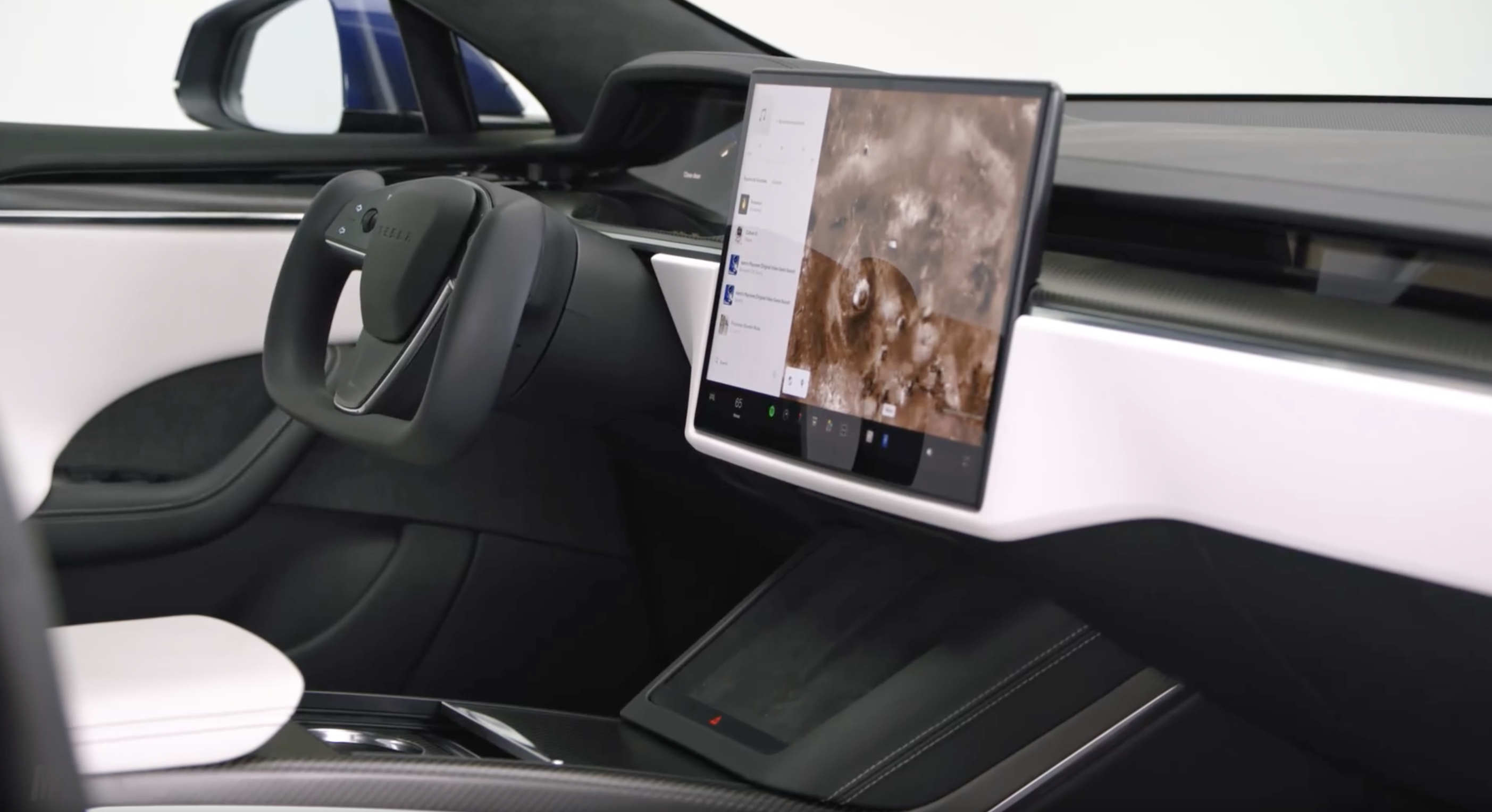 좌우로 기울어지는 17인치 인포테인먼트 터치스크린이 미니멀한 대시보드를 장식하고 뒷좌석 승객을 위한 작은 화면도 있습니다. 추가 기능으로는 통풍 시트, 멀티폰 블루투스, 능동형 소음 감소 기능이 있는 22스피커 오디오, 4개의 무선 휴대폰 충전기 등이 있습니다. 요크 스티어링 휠이 2024년에도 옵션으로 남을 것으로 예상하고 있습니다.