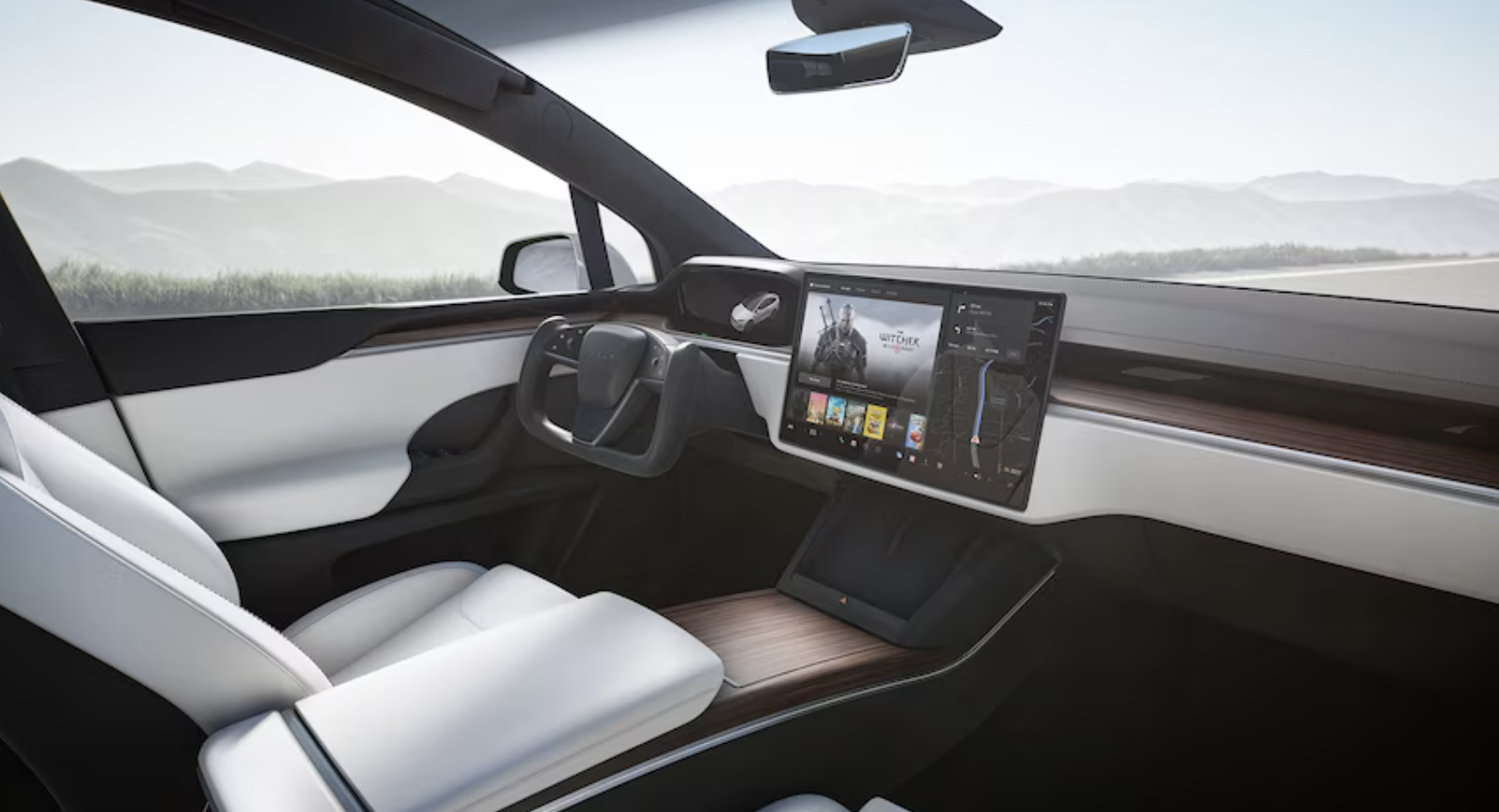 2024 테슬라 모델 X 인테리어의 중심은 거대한 17.0인치 인포테인먼트 터치스크린입니다. 이 유리판은 내비게이션, 온도 조절, 미디어, 비디오 게임 등 차량의 거의 모든 기능을 제어하는 ​​패널 역할을 합니다. 모델 X의 기어 셀렉터도 이 디스플레이에 있습니다.