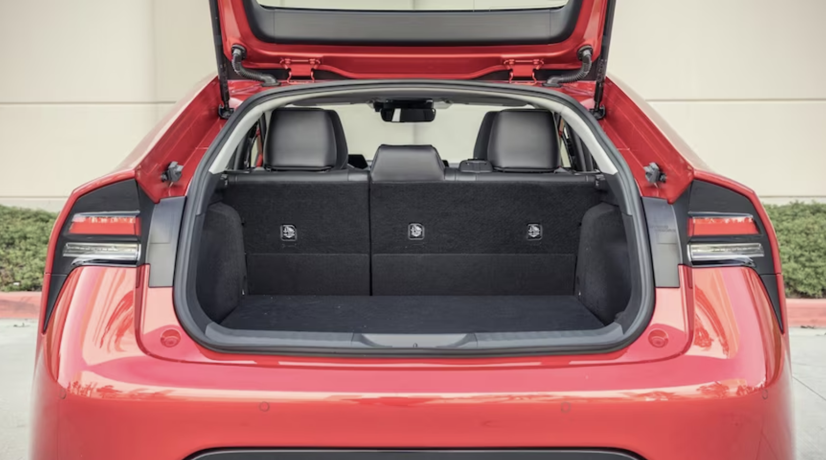 프리우스는 다른 소형 하이브리드 및 전기 자동차와 동등한 레그룸을 제공합니다. 뒷좌석 뒤의 트렁크 공간은 트림에 따라 다르며, LE가 가장 많은 공간을 제공하고 XLE 및 Limited 모델이 가장 적은 공간을 제공합니다.