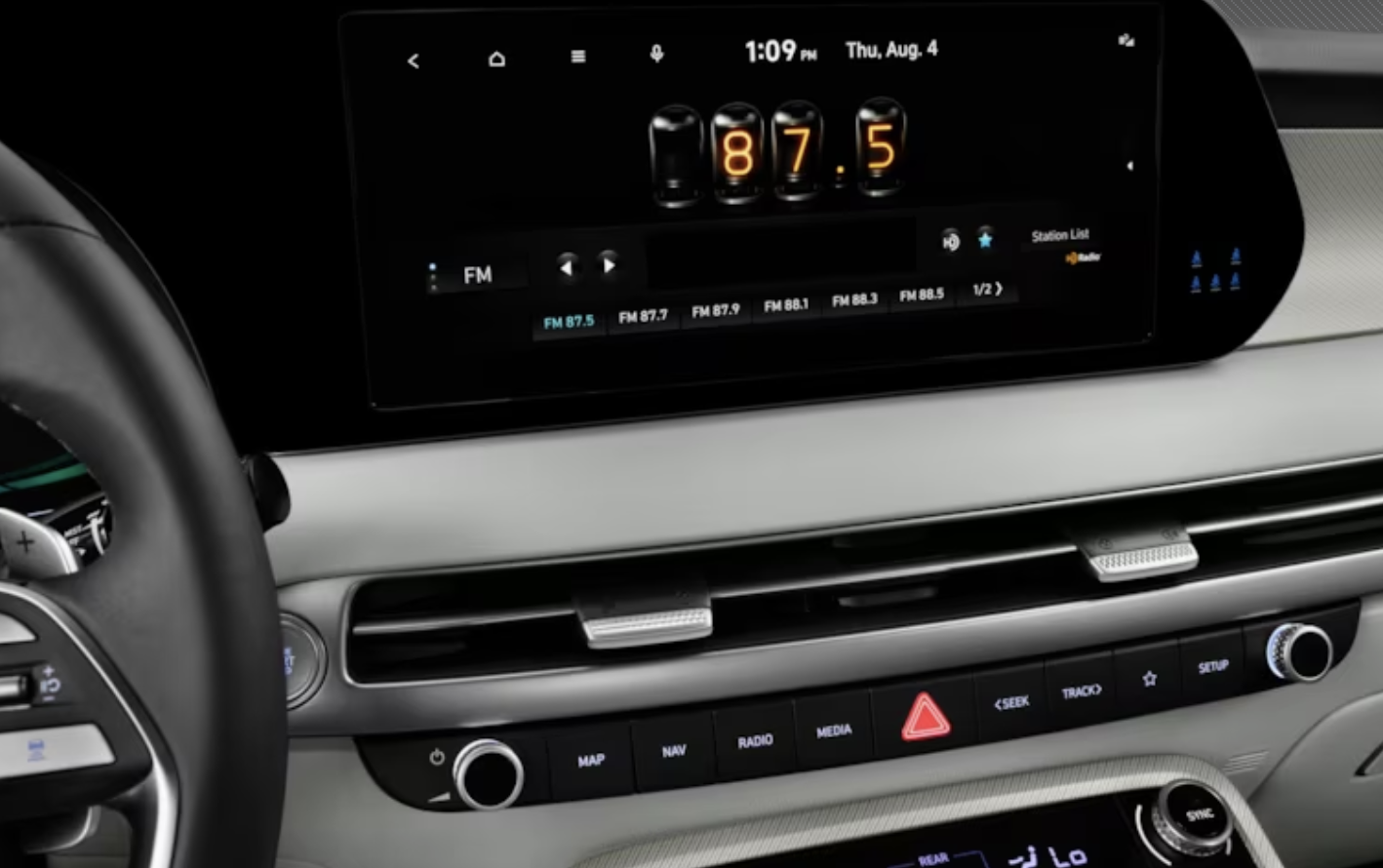 모든 팰리세이드 트림에는 Apple CarPlay 및 Android Auto와 호환되는 12.3인치 인포테인먼트 터치스크린이 함께 제공됩니다. 듀얼 블루투스 연결 및 Wi-Fi 핫스팟 기능도 포함되어 있습니다. 기본 모델에는 4.2인치 게이지 클러스터 디스플레이가 있고, 고급 트림에는 12.3인치 올디지털 게이지 디스플레이가 있으며, 헤드업 디스플레이를 사용할 수 있습니다.