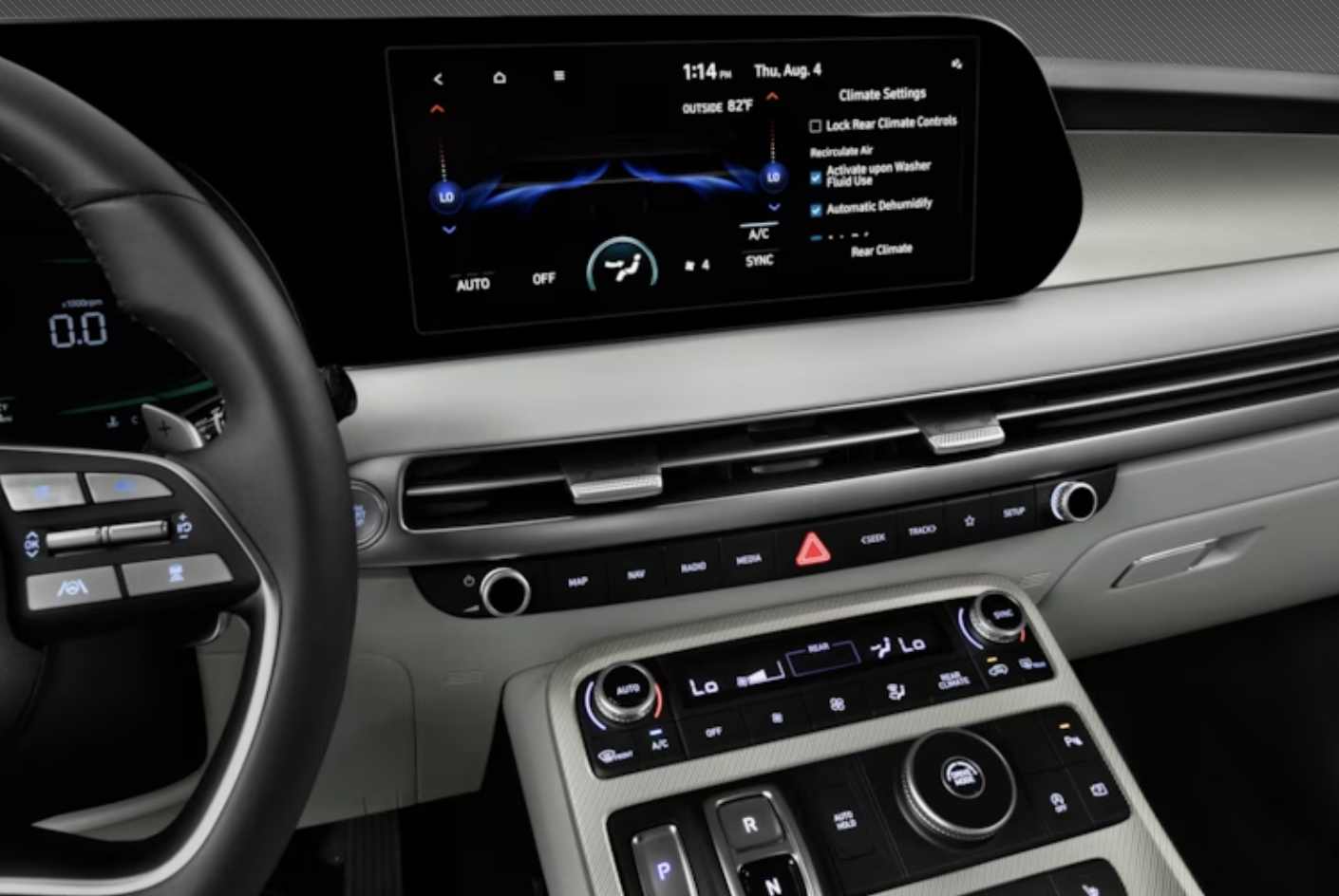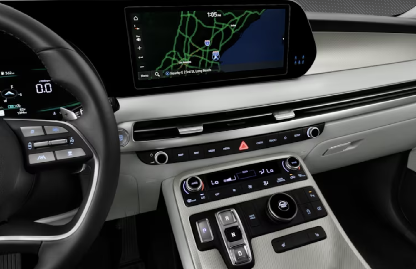 모든 팰리세이드 트림에는 Apple CarPlay 및 Android Auto와 호환되는 12.3인치 인포테인먼트 터치스크린이 함께 제공됩니다. 듀얼 블루투스 연결 및 Wi-Fi 핫스팟 기능도 포함되어 있습니다. 기본 모델에는 4.2인치 게이지 클러스터 디스플레이가 있고, 고급 트림에는 12.3인치 올디지털 게이지 디스플레이가 있으며, 헤드업 디스플레이를 사용할 수 있습니다.