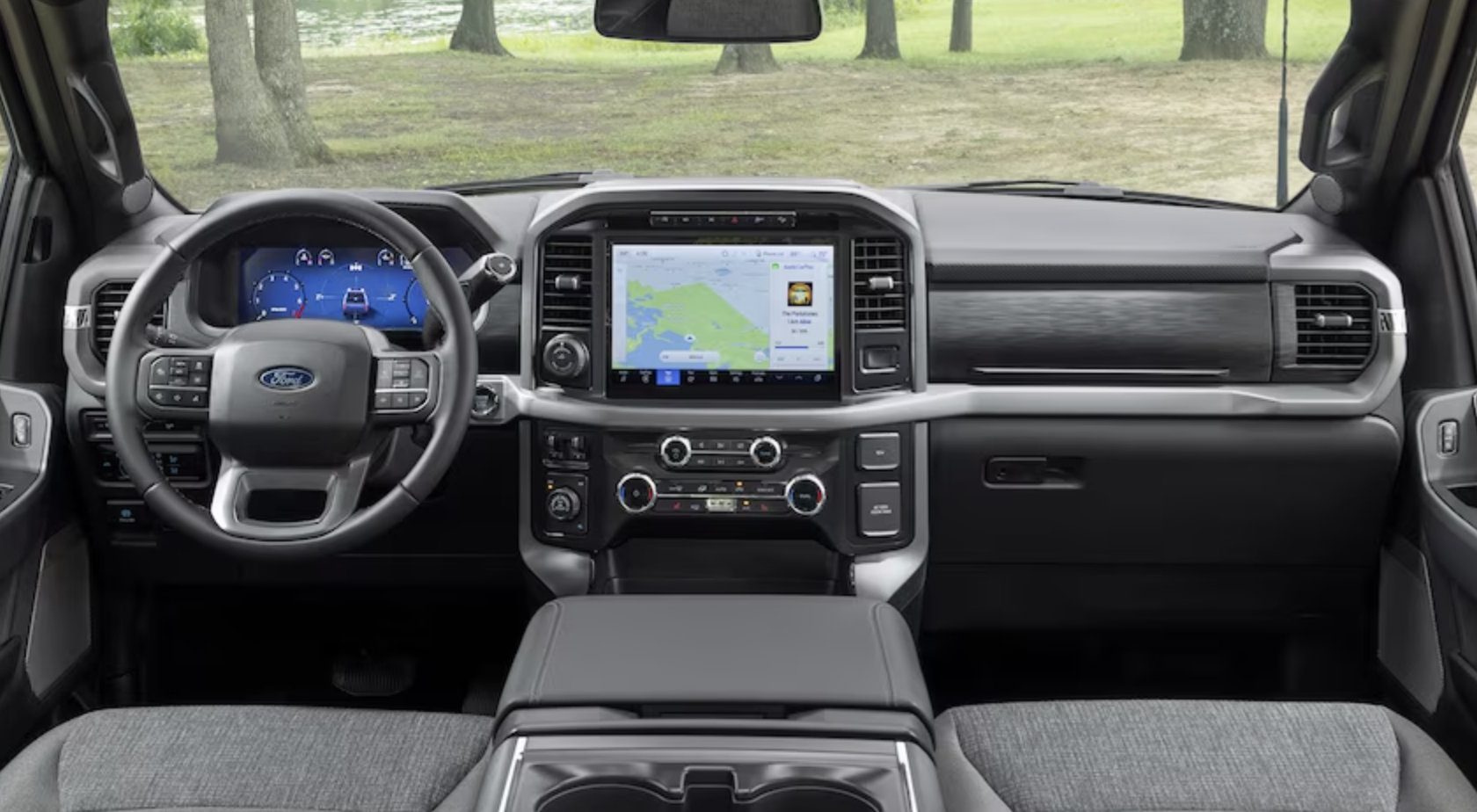 2024년형의 새로운 게이지 클러스터용 듀얼 12.0인치 디스플레이와 인포테인먼트 터치스크린은 F-150 제품군 전체에 걸쳐 표준입니다. 계기판 화면에는 두 가지 다른 정보 세트가 동시에 표시될 수 있습니다. 무선 Apple CarPlay 및 Android Auto도 F-150의 모든 버전에 장착되어 있습니다.