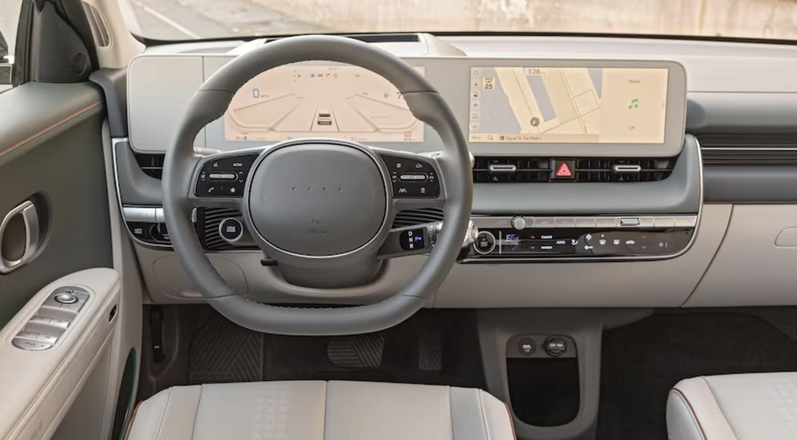 모든 아이오닉 5 트림 레벨에는 12.3인치 화면 2개로 구성된 듀얼 디스플레이 인포테인먼트 설정이 장착됩니다. 운전자 앞의 것은 계기판 역할을 하고, 옆의 것은 인포테인먼트 터치스크린 역할을 합니다. Apple CarPlay와 Android Auto가 포함되어 있습니다.