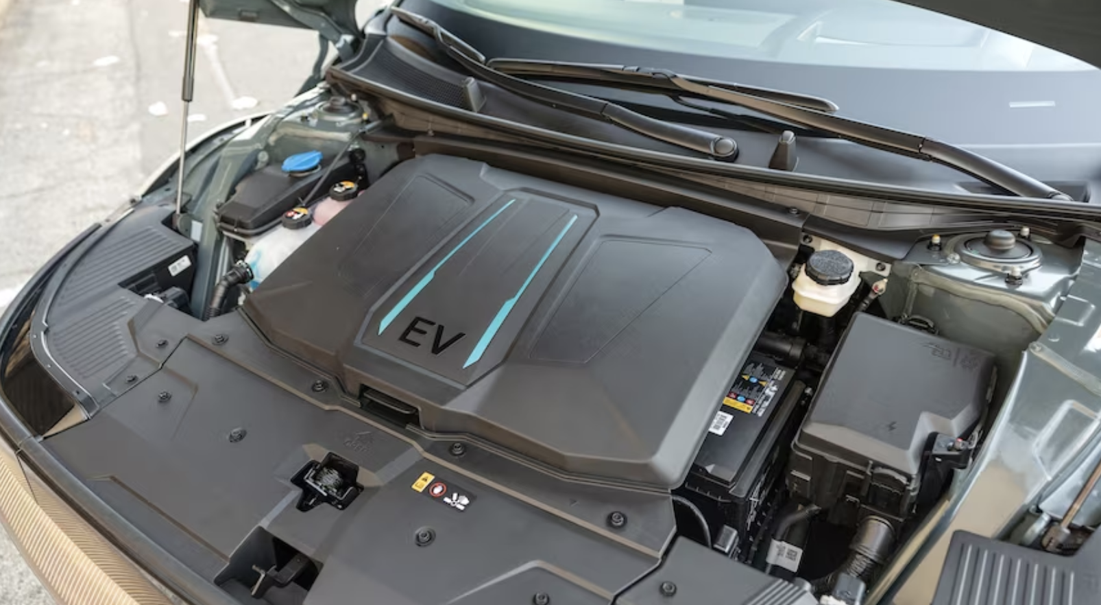 아이오닉 5 내부에는 승객과 짐을 위한 넉넉한 공간이 있습니다. 긴 휠베이스 덕분에 2열 레그룸도 넉넉합니다. 또한 후드 아래에는 작은 프렁크가 있습니다.