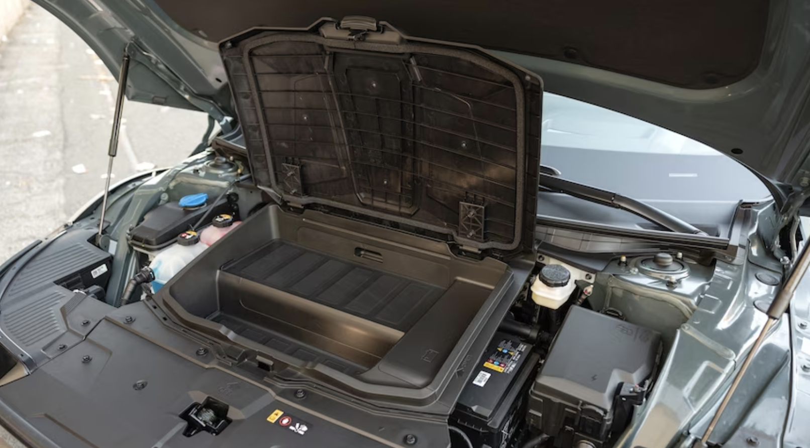 아이오닉 5 내부에는 승객과 짐을 위한 넉넉한 공간이 있습니다. 긴 휠베이스 덕분에 2열 레그룸도 넉넉합니다. 또한 후드 아래에는 작은 프렁크가 있습니다.