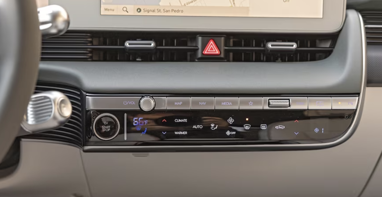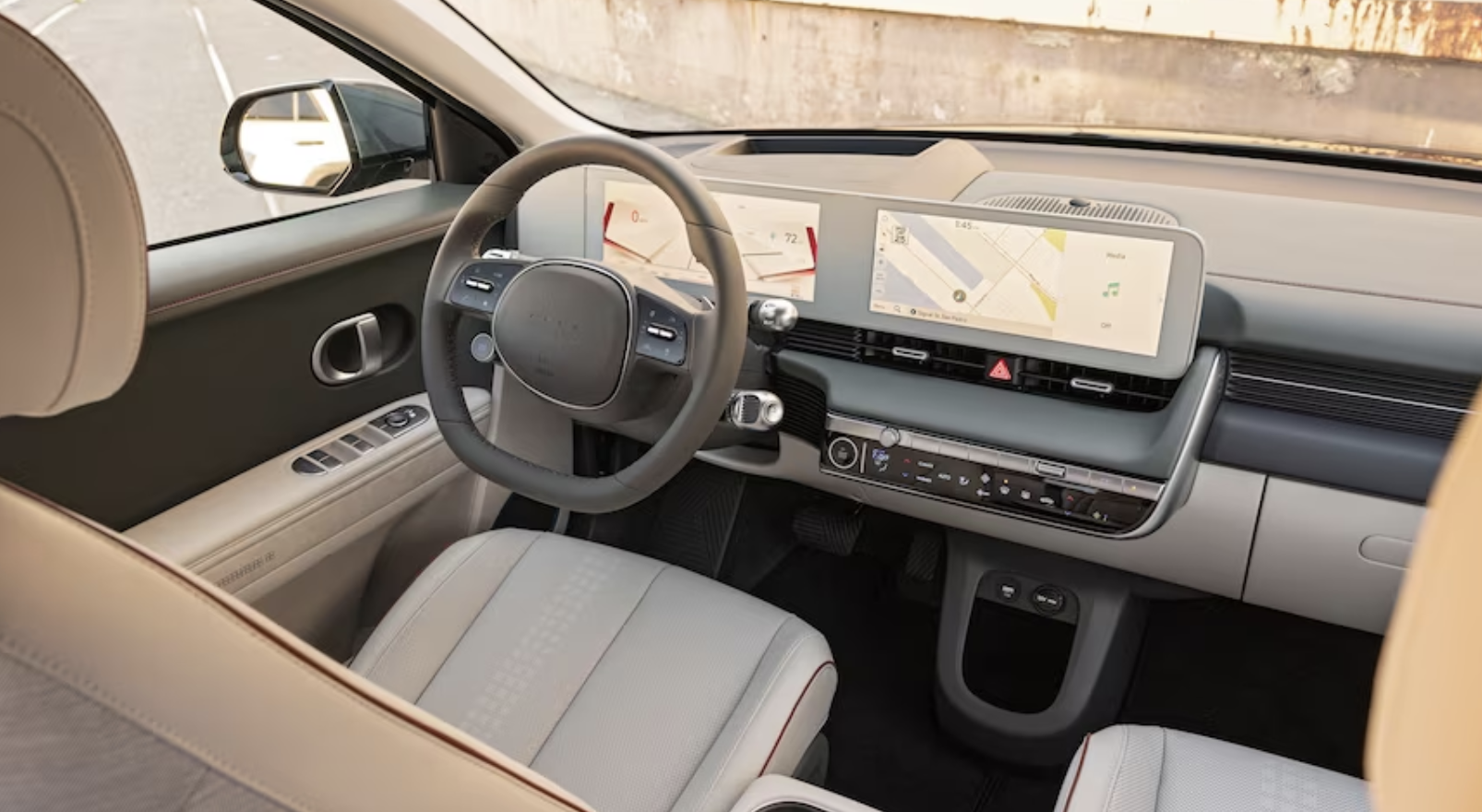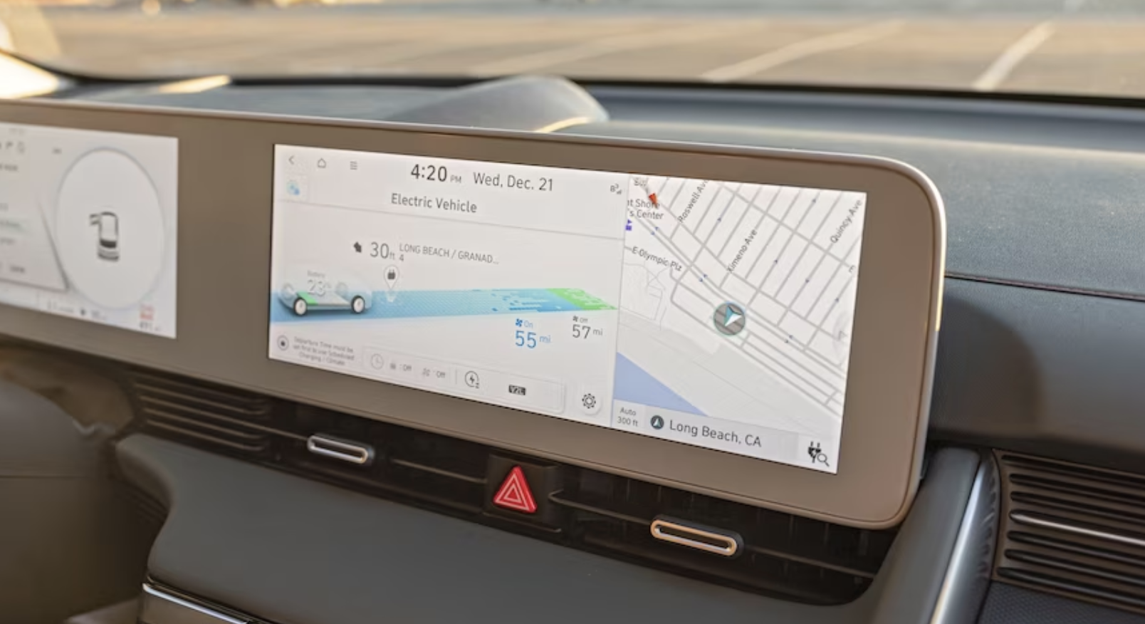 모든 아이오닉 5 트림 레벨에는 12.3인치 화면 2개로 구성된 듀얼 디스플레이 인포테인먼트 설정이 장착됩니다. 운전자 앞의 것은 계기판 역할을 하고, 옆의 것은 인포테인먼트 터치스크린 역할을 합니다. Apple CarPlay와 Android Auto가 포함되어 있습니다.