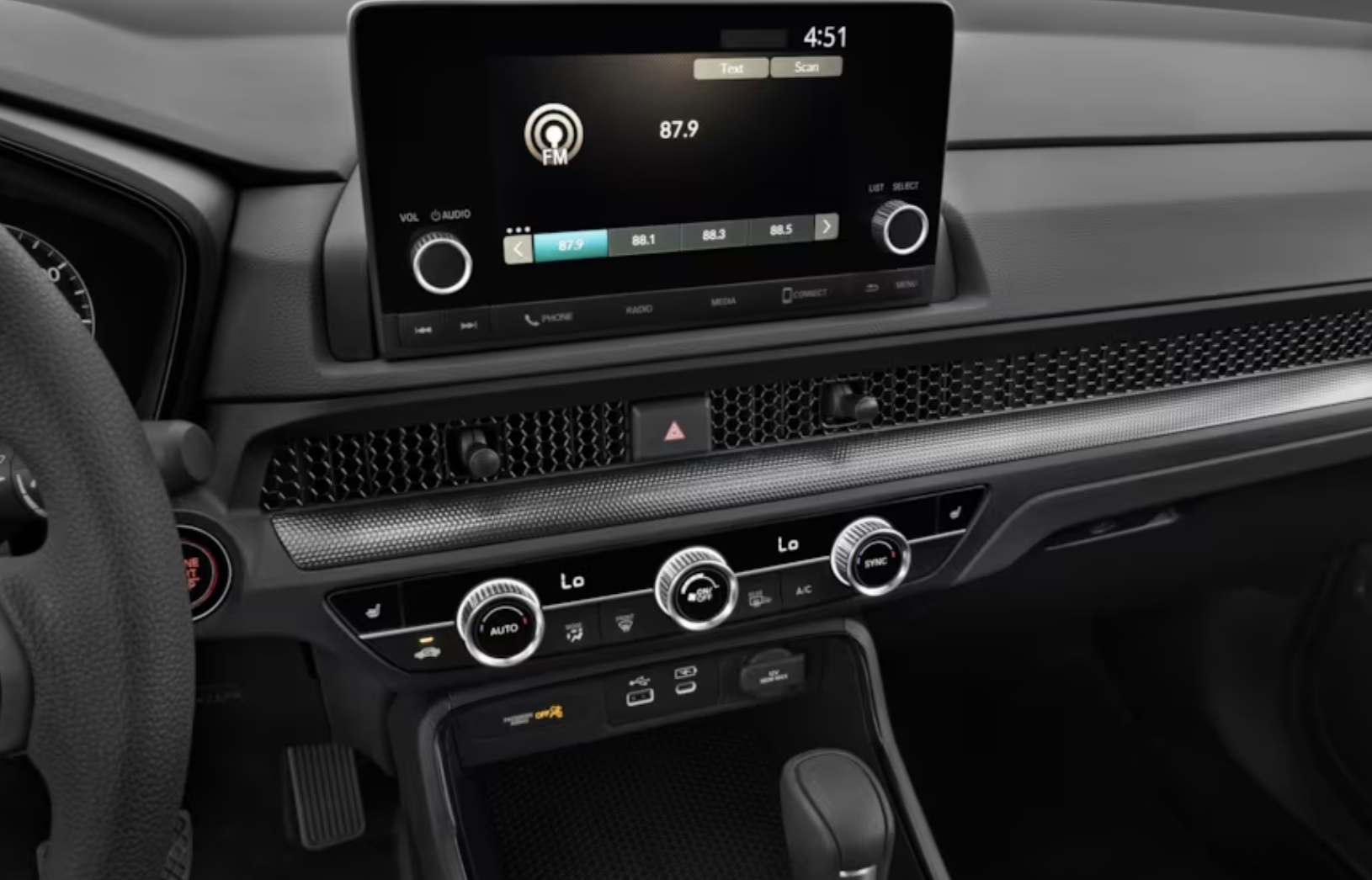 혼다는 CR-V의 LX, EX 및 스포츠 하이브리드 모델에 7.0인치 인포테인먼트 디스플레이를 장착하고 EX-L, 스포츠-L 하이브리드 및 스포츠 투어링 하이브리드 모델에는 9.0인치 인포테인먼트 디스플레이를 장착합니다. 유선 Apple CarPlay 및 Android Auto는 작은 화면의 표준이지만 더 큰 장치에서는 무선 전화 미러링을 수신합니다. 모든 2024 혼다 CR-V에는 트림 레벨에 관계없이 7.0인치 디지털 계기판 디스플레이가 함께 제공됩니다.