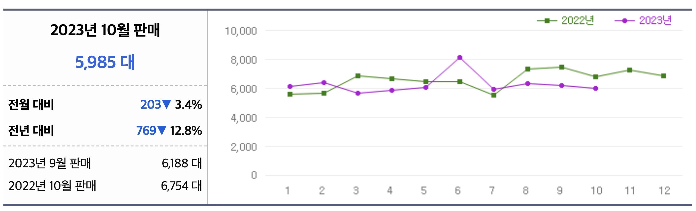 BMW 2023년 10월 판매량은 5,985대로 판매량 순위 Top3는 1위 BMW 3시리즈, 2위 BMW 5시리즈, 3위 BMW X7입니다. 각 차종에 대한 자세한 사항은 하단에서 확인하실 수 있습니다.